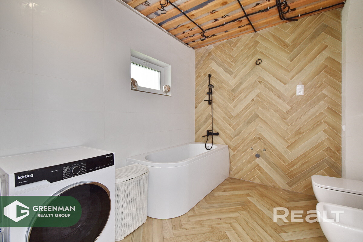 Современный, но не совсем достроенный дом можно купить за 150 000 долларов. Он каркасный, утепленный, площадь первого этажа 105,8 м2.