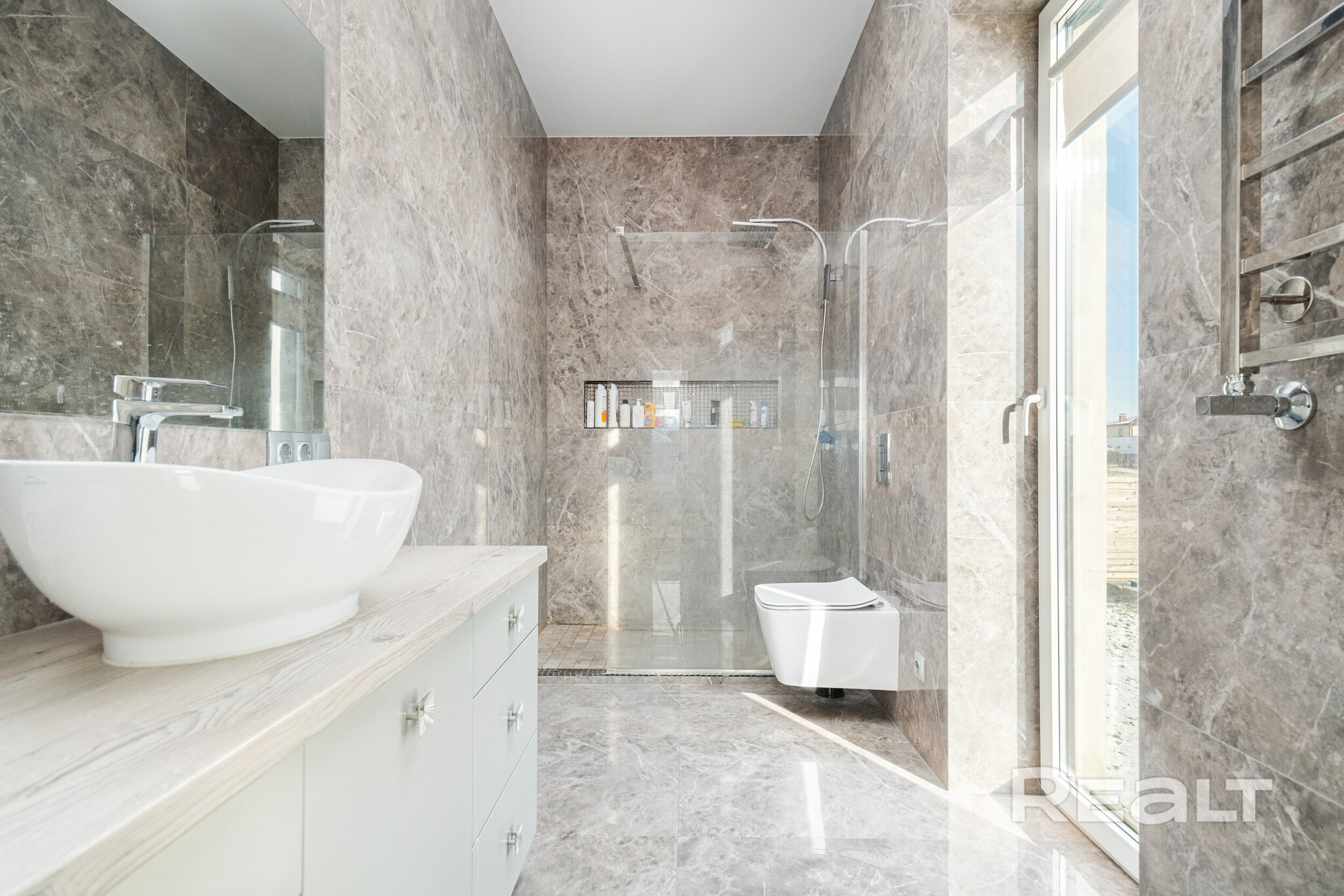 Сделан отличный ремонт: установлены окна в пол, есть полы с подогревом, встроенная кухня, санузлы оборудованы и облицованы современной плиткой.