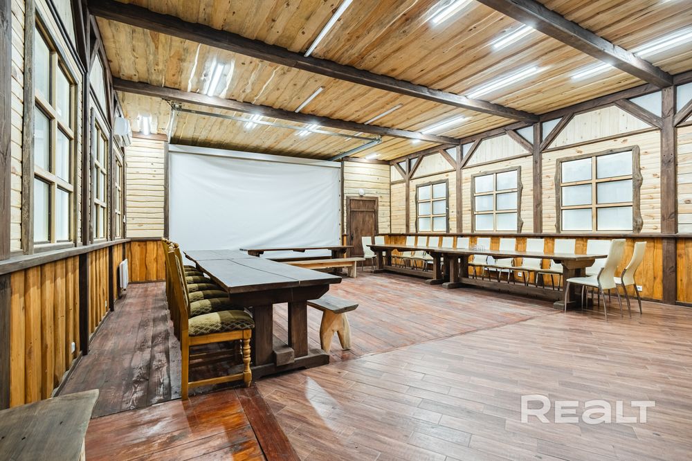 На территории имеется двухэтажный гостевой дом. В нем 4 комнаты, терраса. Плюс дом с банкетным залом, кухней и комнатами на втором этаже.