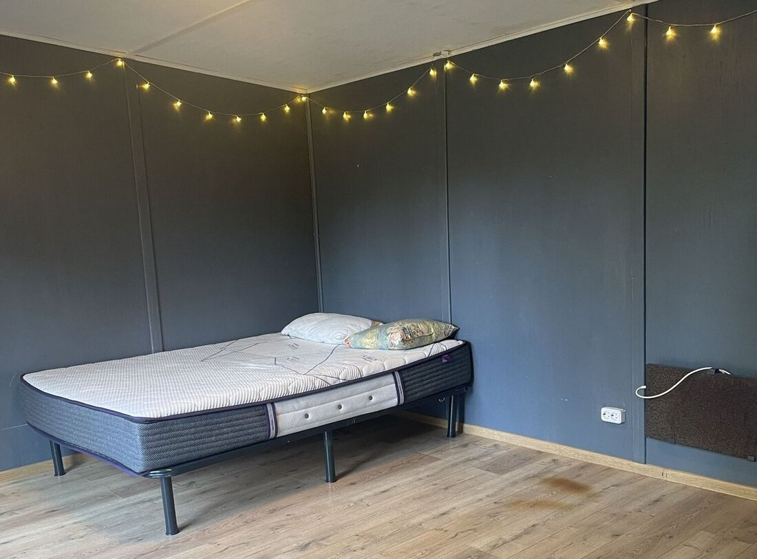 Из мебели в общей комнате имеется лишь кровать с ортопедическим матрасом.