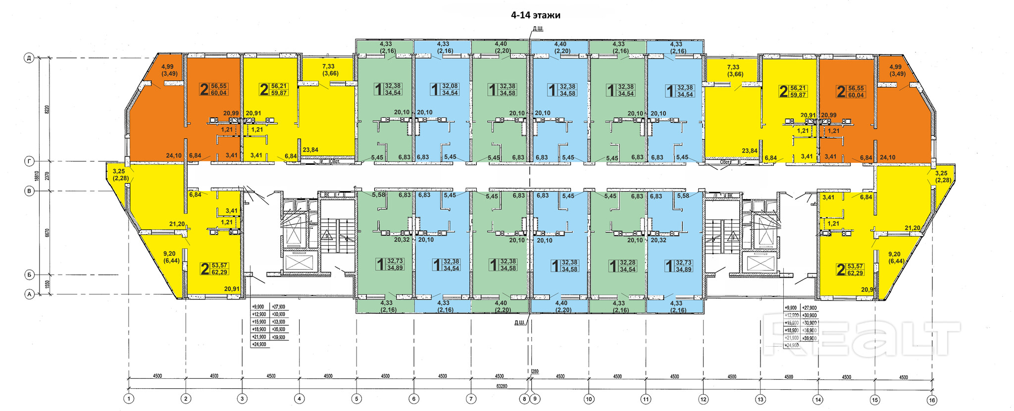 22 квартиры общей площадью 35 квадратов стоимостью 5 500 рублей (1 850 долларов), а также 23 студии общей площадью 35 квадратов, окна в которых выходят во двор, стоимостью 5 300 рублей (1 780 долларов) за квадрат.