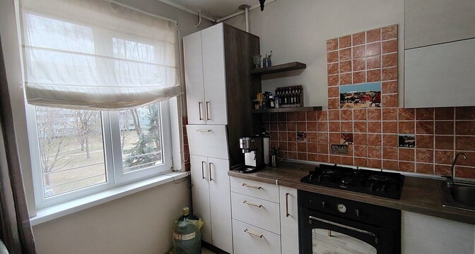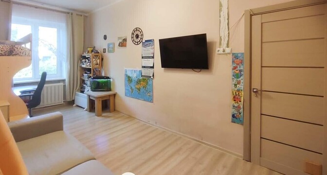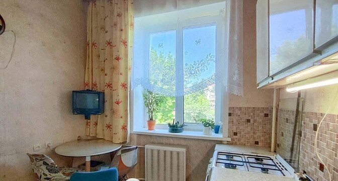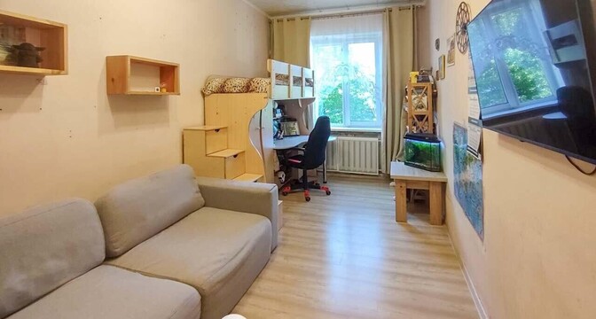 Последний вариант подборки — однушка в малосемейке на проспекте Любимова, 46 корпус 2. Это третий этаж панельной девятиэтажки 1984 года. В 2023 году в доме прошел капремонт. До станции метро «Малиновка» около двух километров, можно подъехать на общественном транспорте за 10 минут, остановка рядом с домом.