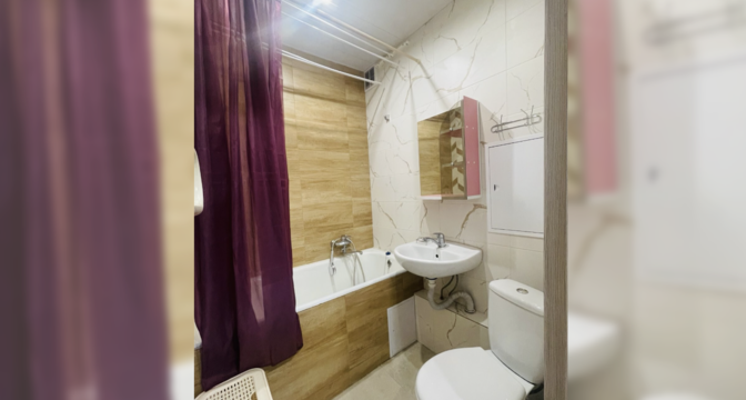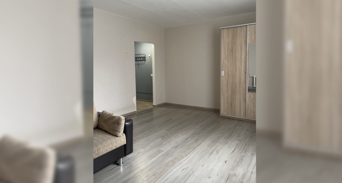 Общая площадь — 21 квадрат, жилая — 12, кухня — На полу лежит ламинат и плитка. Установлены стеклопакеты. В жилой комнате есть шкаф-купе. В совмещенном санузле установлена душевая кабина. Есть подвал.