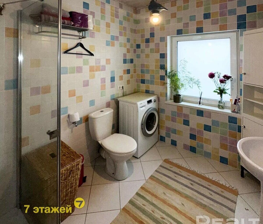 На полах плитка (с электроподогревом), ламинат и половая доска. Стены обшиты вагонкой. Имеется мебель и бытовая техника.