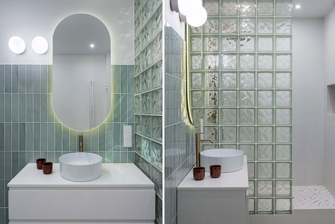 — Отделку решили сделать максимально простой, чтобы сфокусировать все внимание на предметах мебели и интересных приемах, — говорит дизайнер. — Отправной точкой в разработке цветовой палитры стала керамическая плитка мятного цвета, которую мы выбрали для ванной. Вслед за этим мы решили добавить комплиментарные мятному оттенки терракотового, синего, зеленого и персикового.