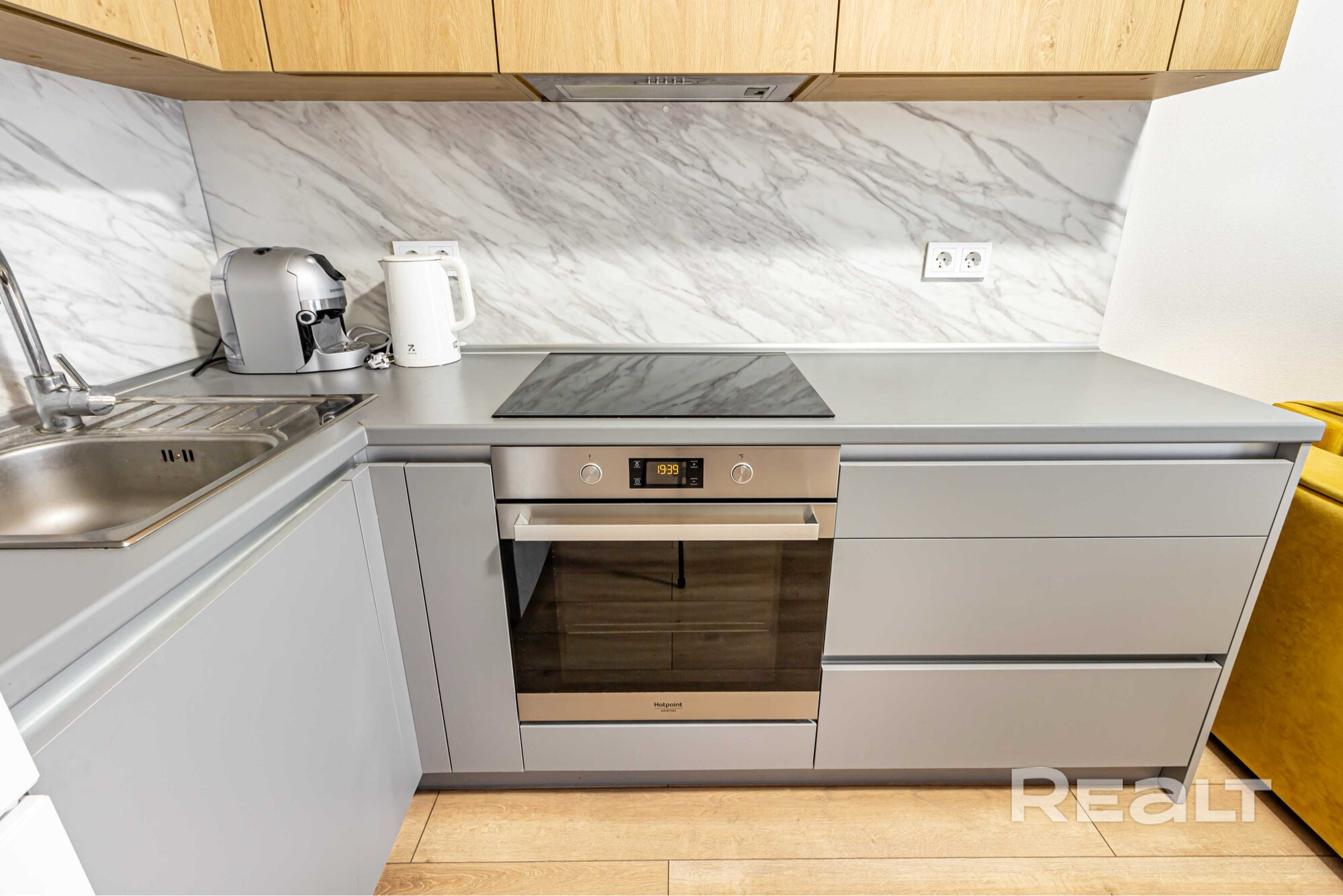 Квартира полностью готова к проживанию. Здесь есть полноценная кухня с плитой, духовкой и большим холодильником. Отмечается, что в отделке использованы импортные материалы.