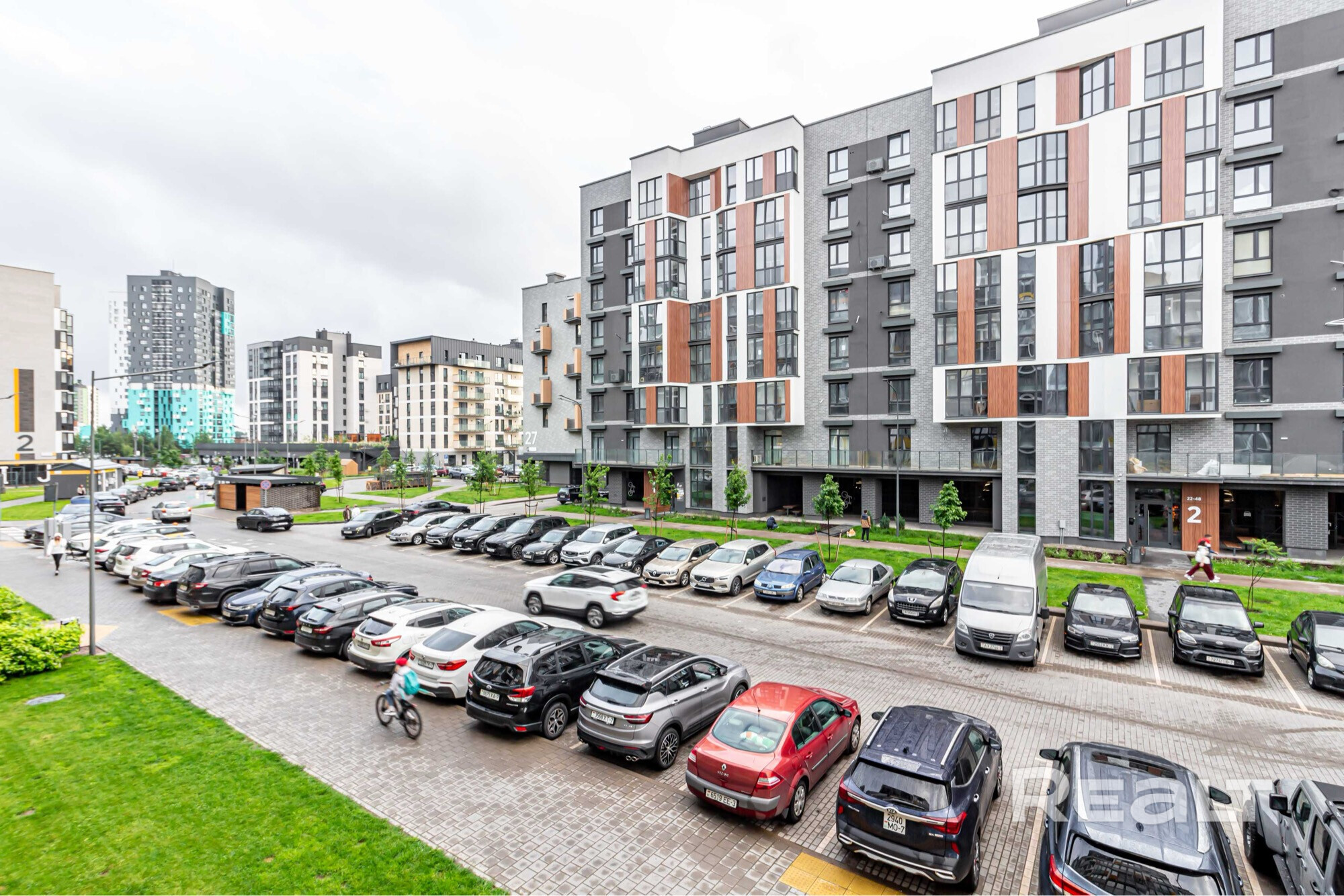 В шаговой доступности от дома находится центральная площадь с фонтанами, 4 ресторана, 3 кафе, спортзал. Рядом с семиэтажкой есть гостевая автомобильная стоянка.