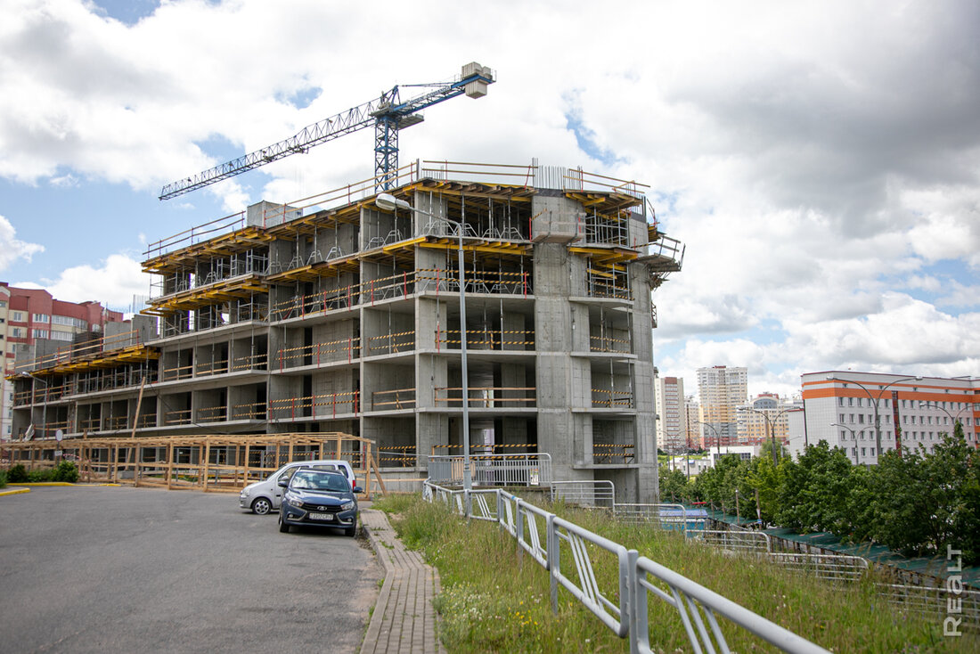 На месте паркинга-долгостроя в минском микрорайоне Брилевичи вот уже несколько месяцев растет новый жилой дом. Эта коммерческая высотка будет не самой обычной. Во-первых, в 24-этажном доме будут исключительно однушки и двушки. А во-вторых, прибыль от продажи жилья пойдет на компенсации обманутым дольщикам другого ЖК. Мы посмотрели, как движется стройка многоэтажки и узнали, сколько тут стоят квартиры.