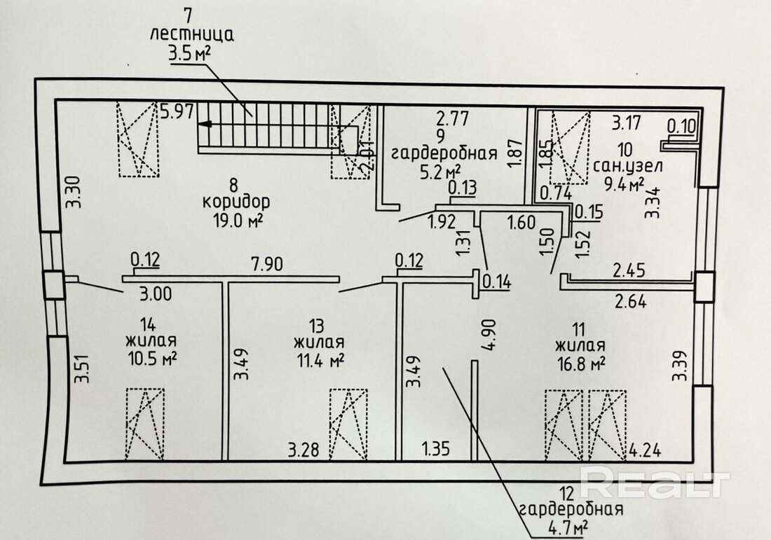 На второй этаж ведет деревянная лестница. На мансарде расположены мастер-спальня с санузлом, две спальни, гардеробная, общий коридор.