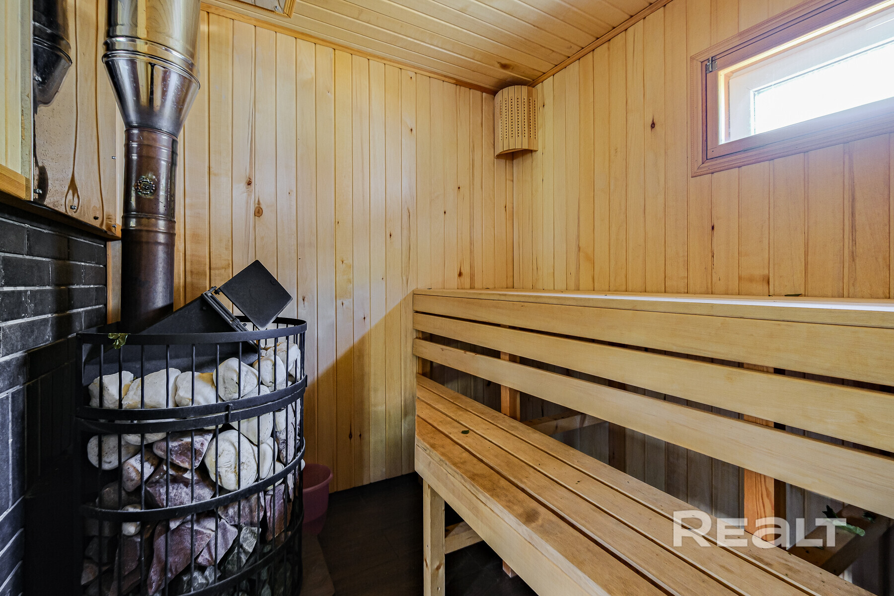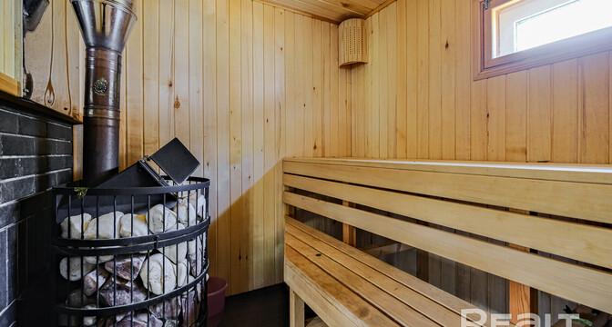 Рядом с домом находится действующая баня (5×6 метров) на дровах, с комнатой отдыха, душевой и санузлом. Есть и сарай.