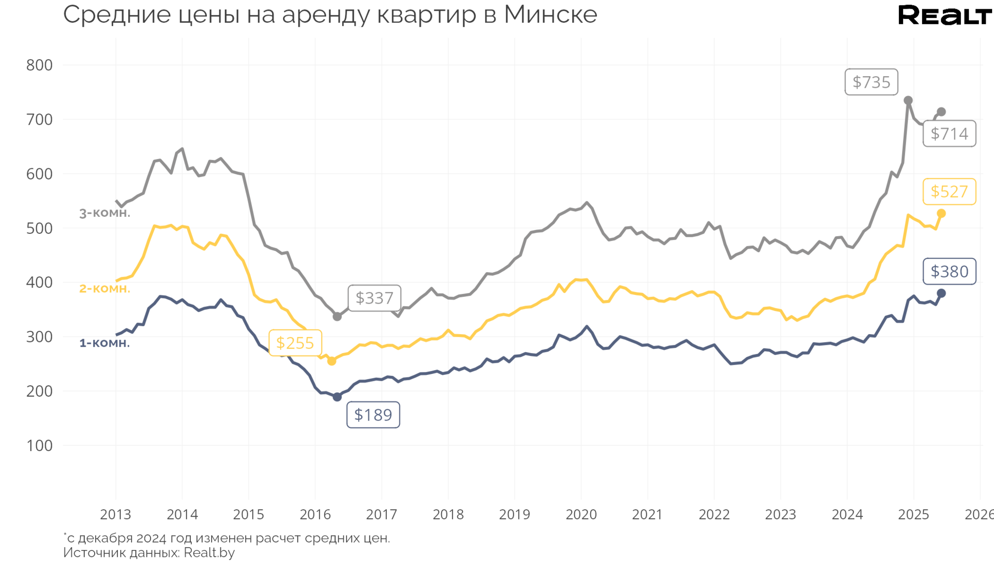 * 3-комнатные квартиры — $ 714 (рост на 1.13%);