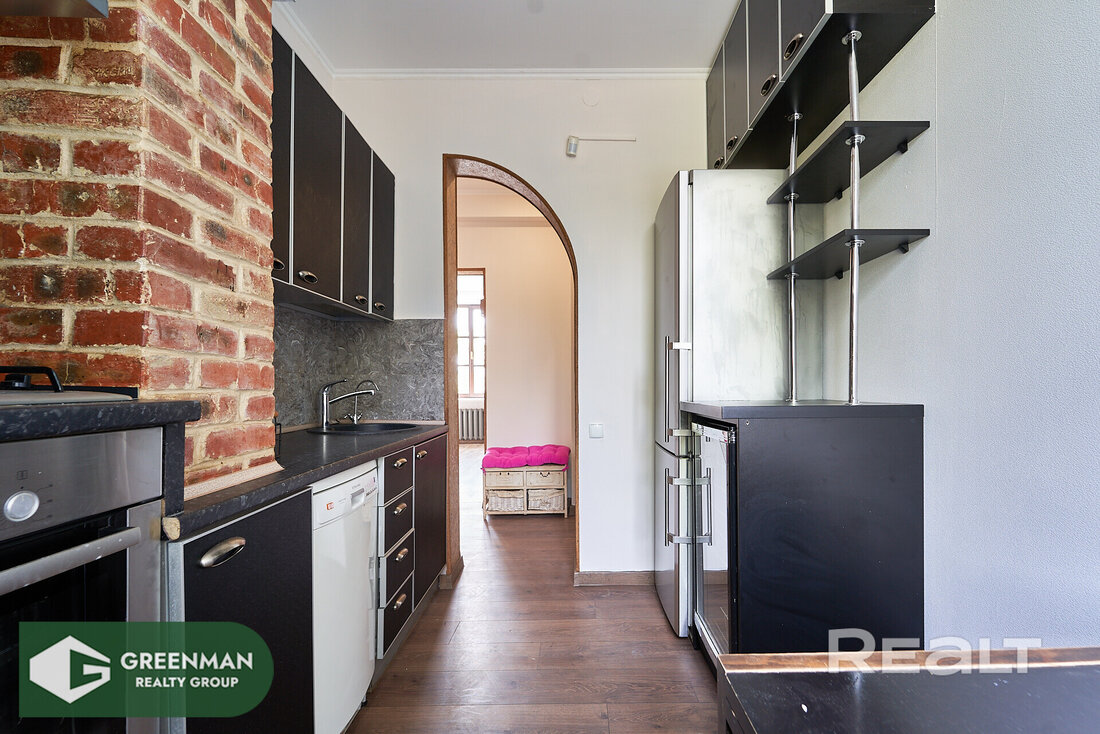 В доме 1928 года через дорогу от ворот стадиона «Динамо» на продажу выставили квартиру с хорошим ремонтом. В этой трешке гармонично сочетаются белые стены и кирпичная кладка. Квадрат в квартире стоит почти 2 800 долларов. А во сколько обойдется трешка? Рассказываем.