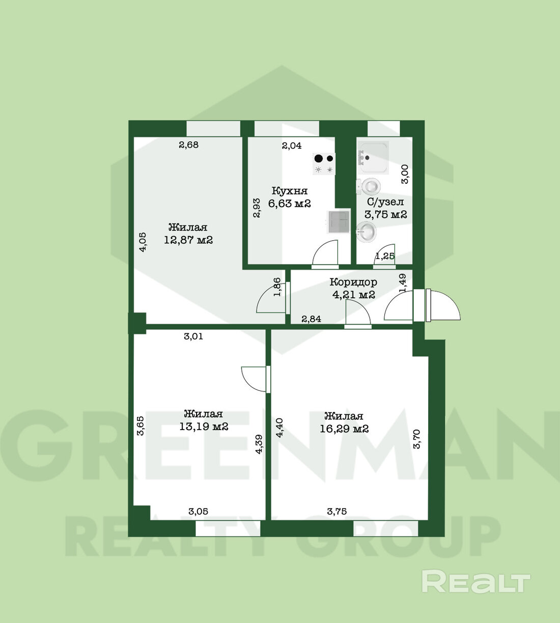 Квартира, выставленная на продажу, расположена на втором этаже. Общая площадь трешки — 57 квадратов, а жилая — 42. Кухня занимает 7 метров. Перепланировка узаконена.