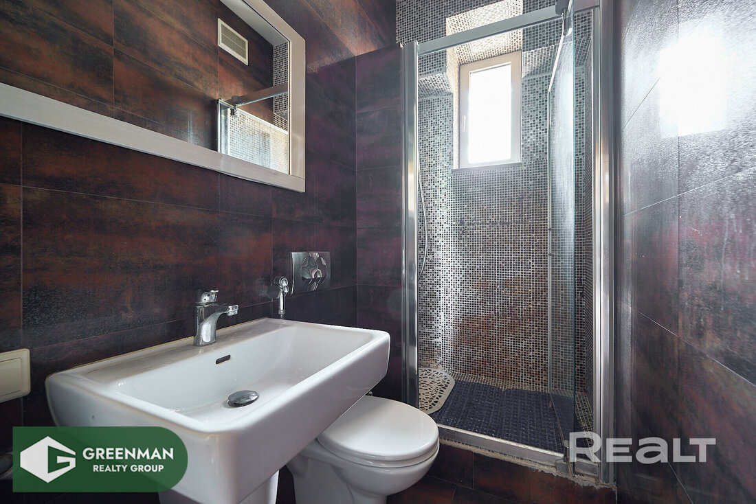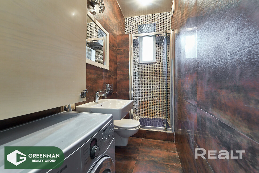 Санузел совмещенный. Установлена душевая и подключена стиральная машина.