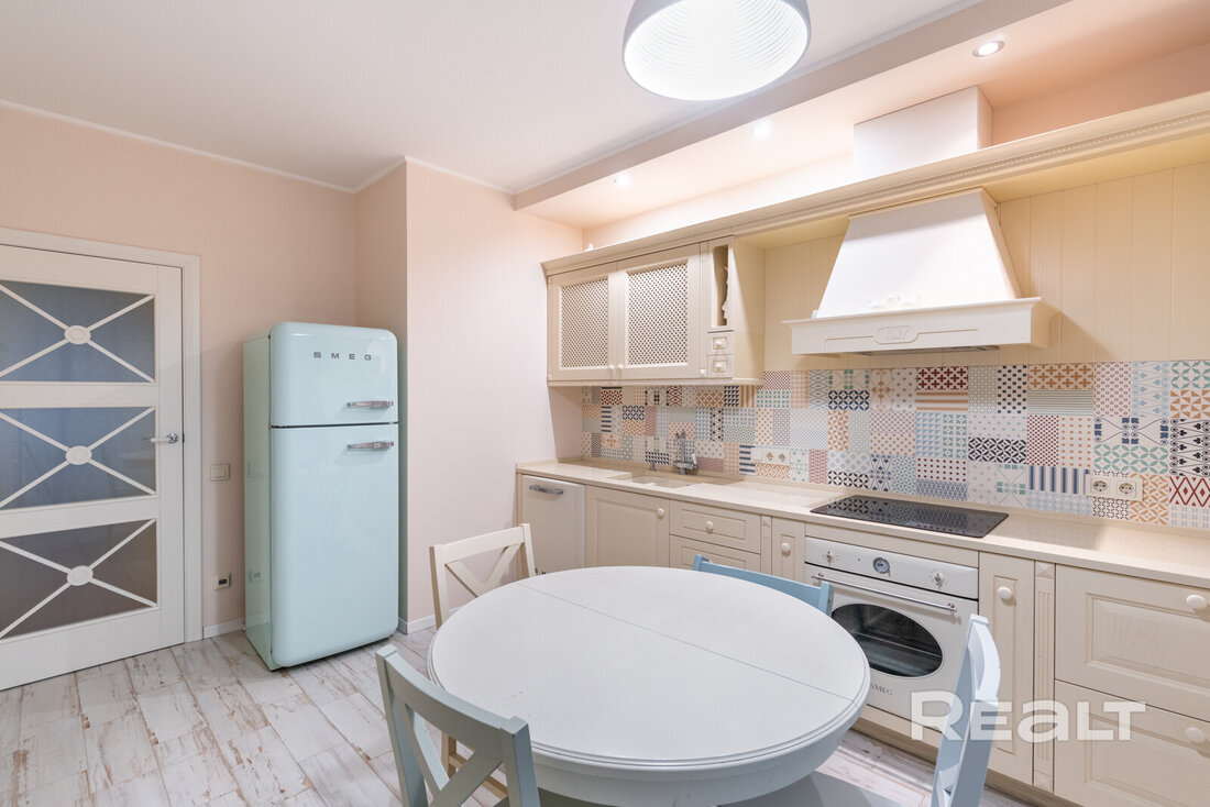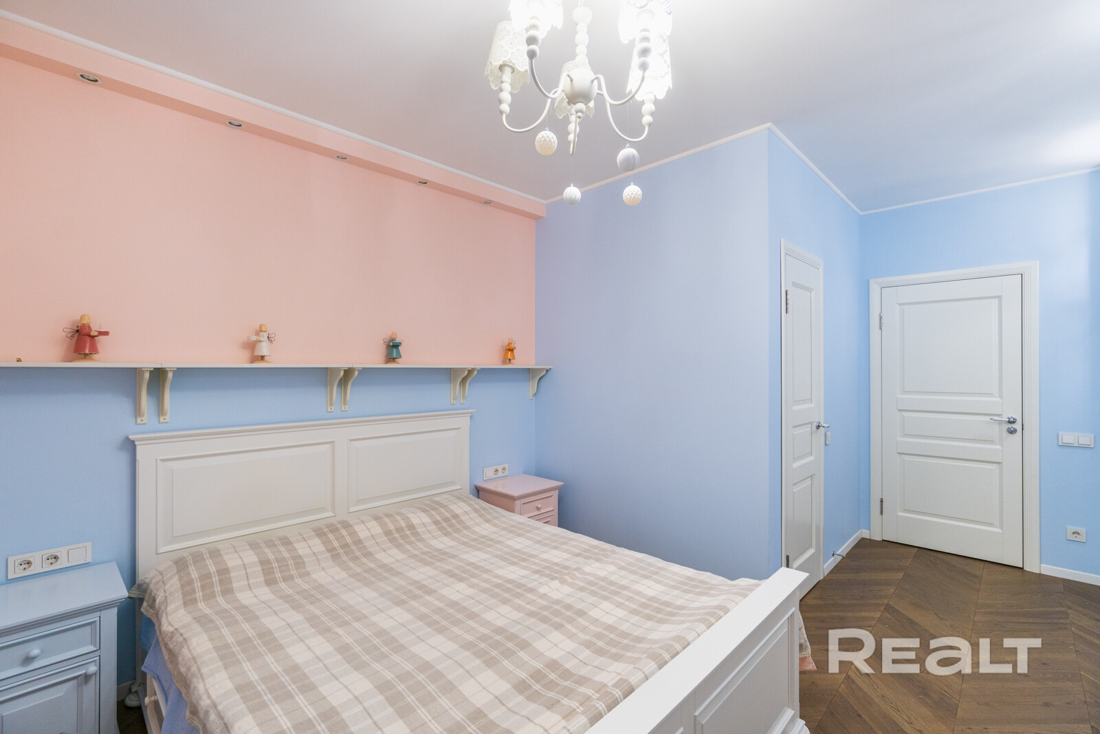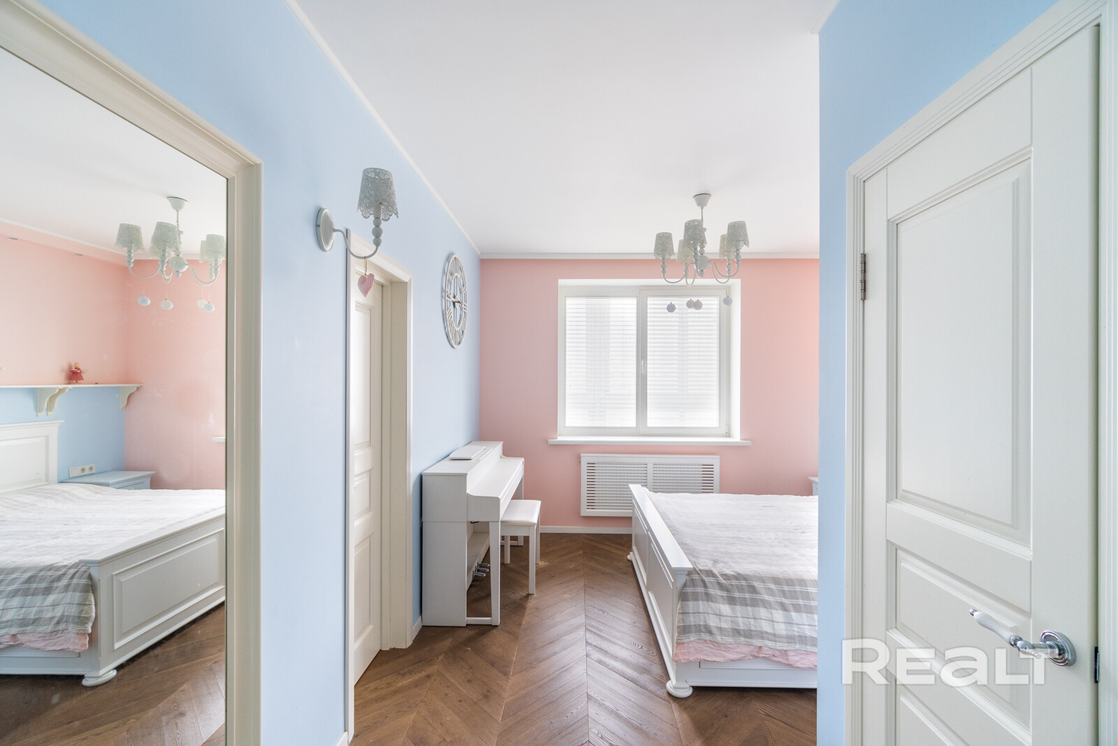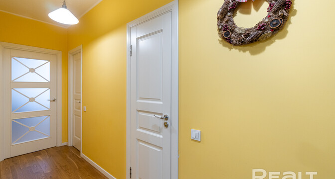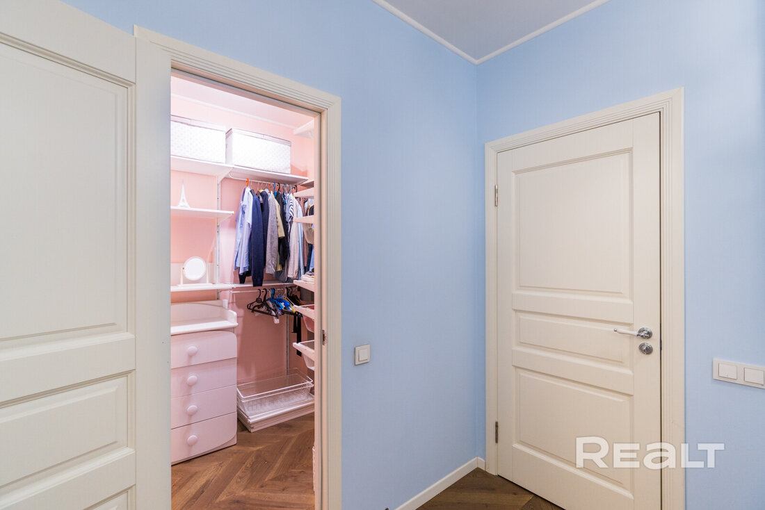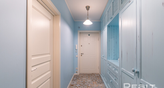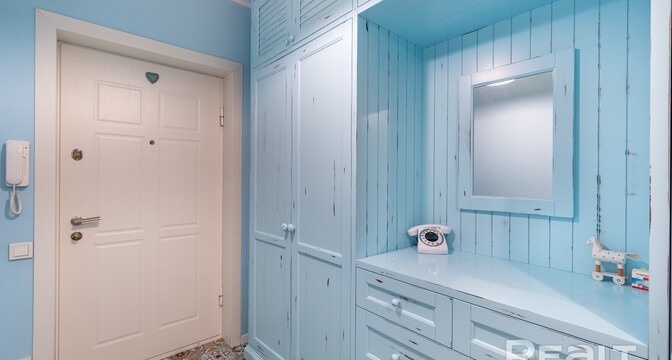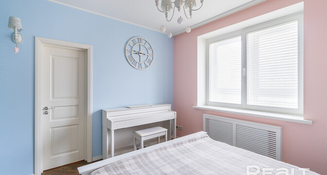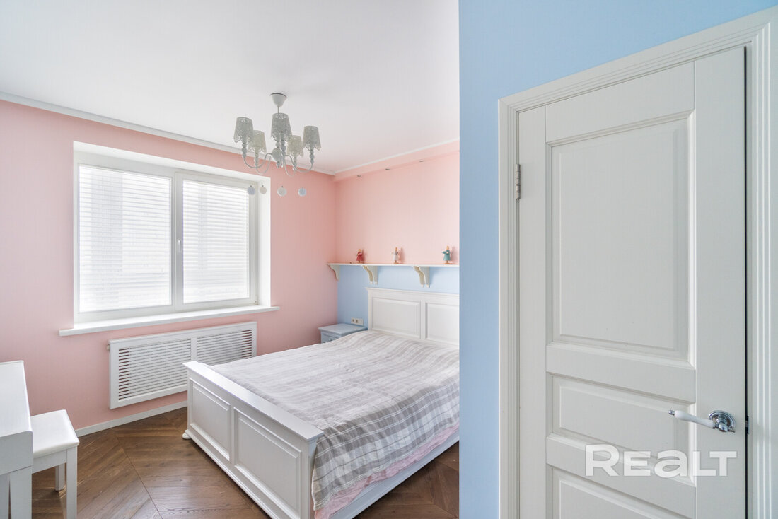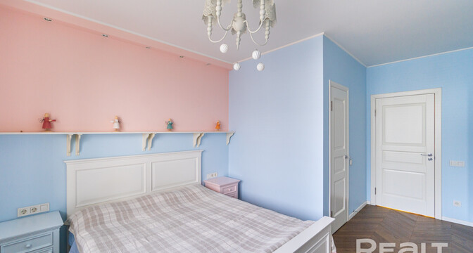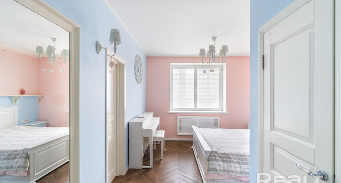 Эта квартира находится в нестаром доме рядом со станцией метро «Грушевка». Интерьер двушки выглядит нежным: стены покрашены в розовый, голубой и желтый цвета. В квартире получилось выделить гардеробную, кабинет и обустроить зону отдыха на лоджии. Показываем, как выглядит это жилье. К слову, в его стоимость входит и парковочное место.