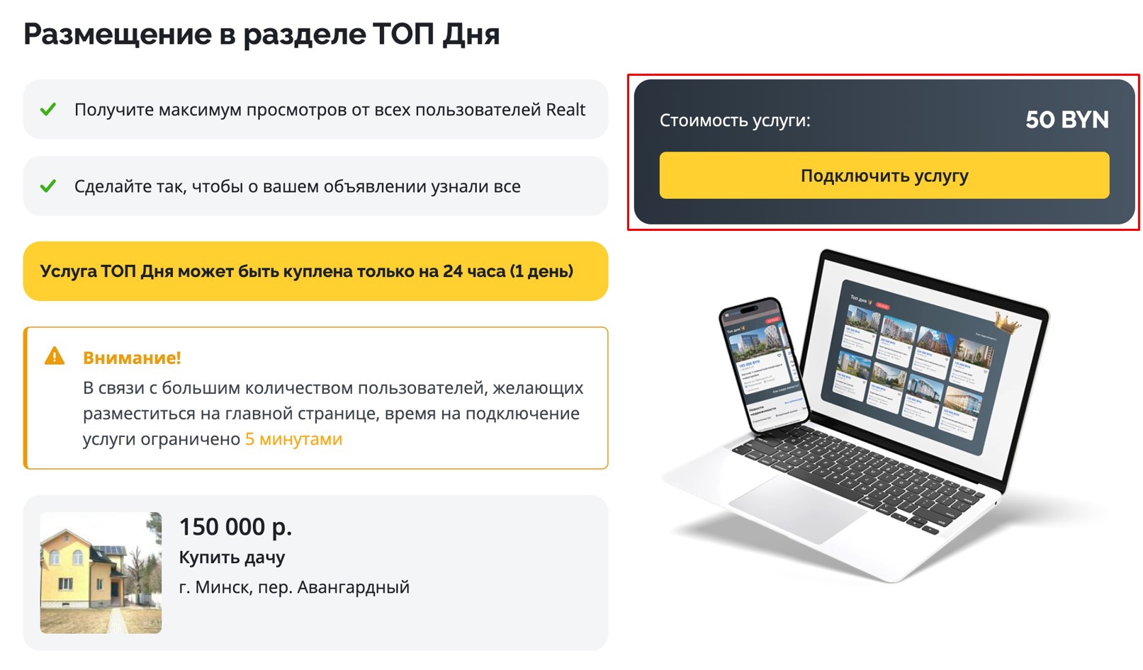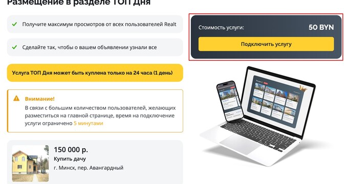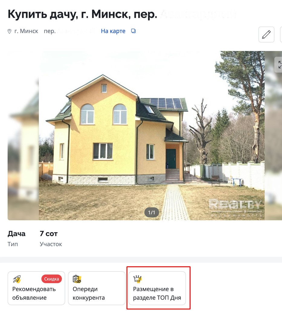 Пользуйтесь новой услугой Realt ТОП Дня, получайте максимум просмотров и продавайте недвижимость выгодно!