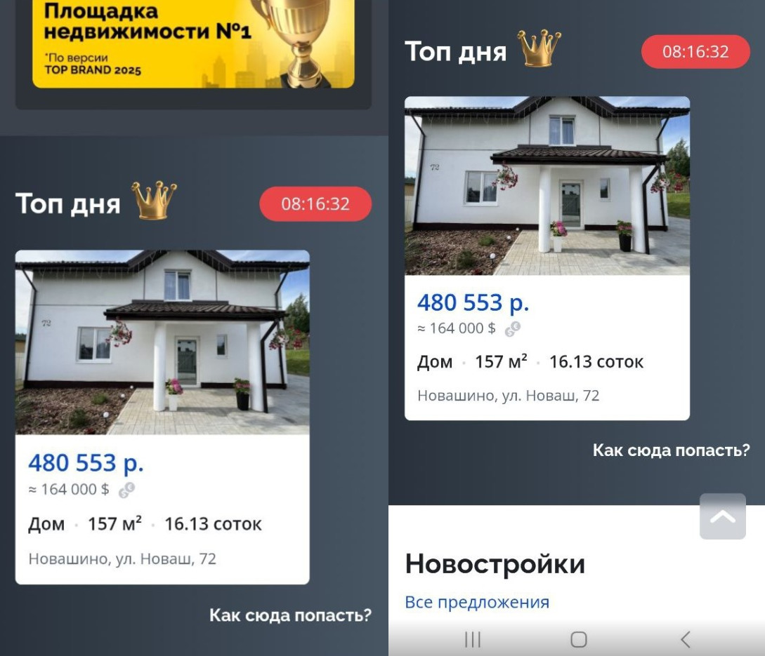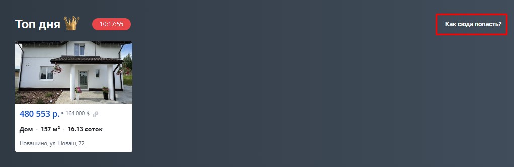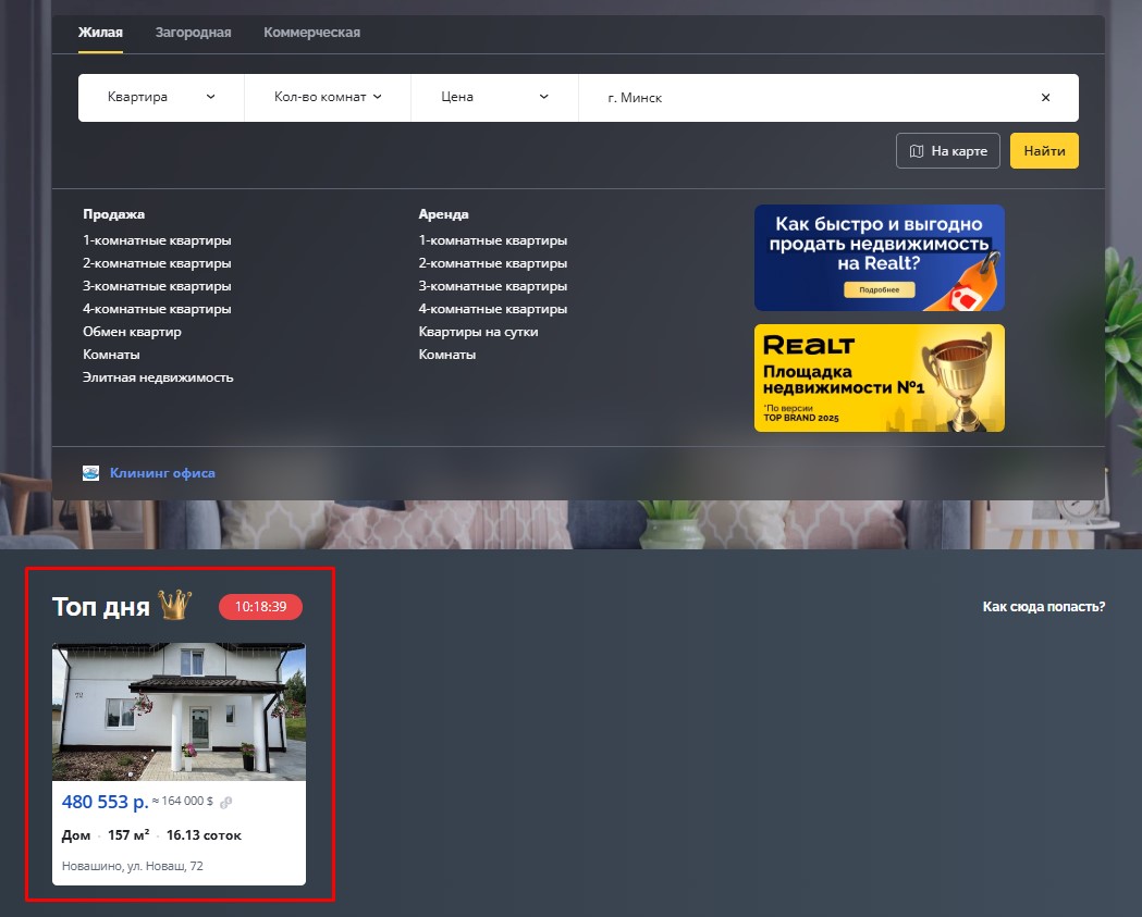 ТОП Дня — это по сути новый раздел на главной странице Realt в десктопной и мобильной версиях. В этом блоке в сутки размещается всего восемь объявлений, которые получают максимальные охваты.
