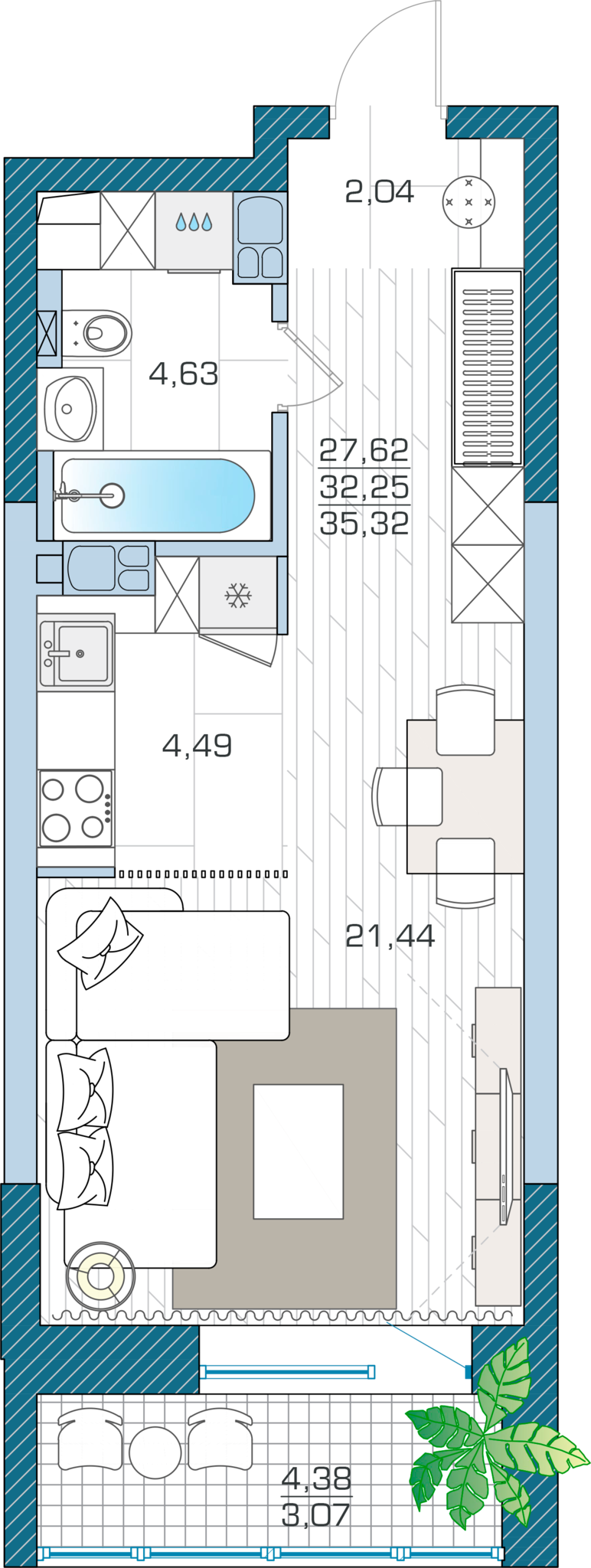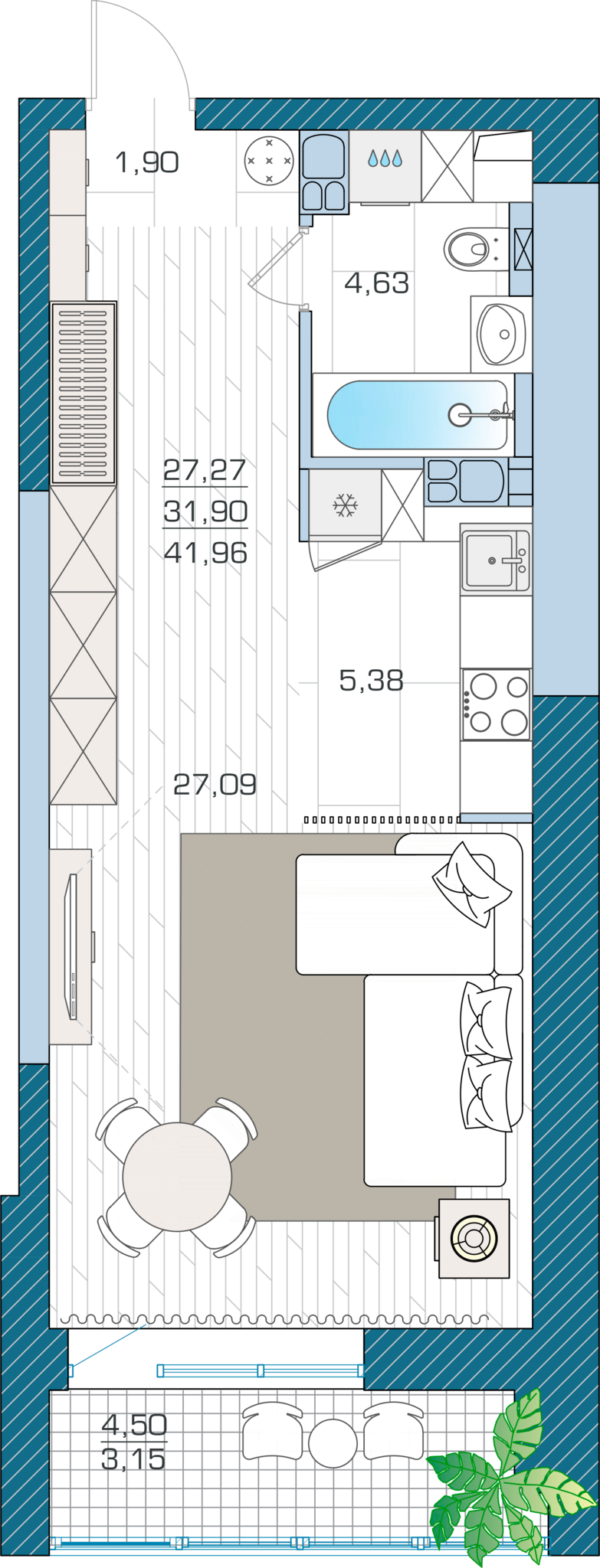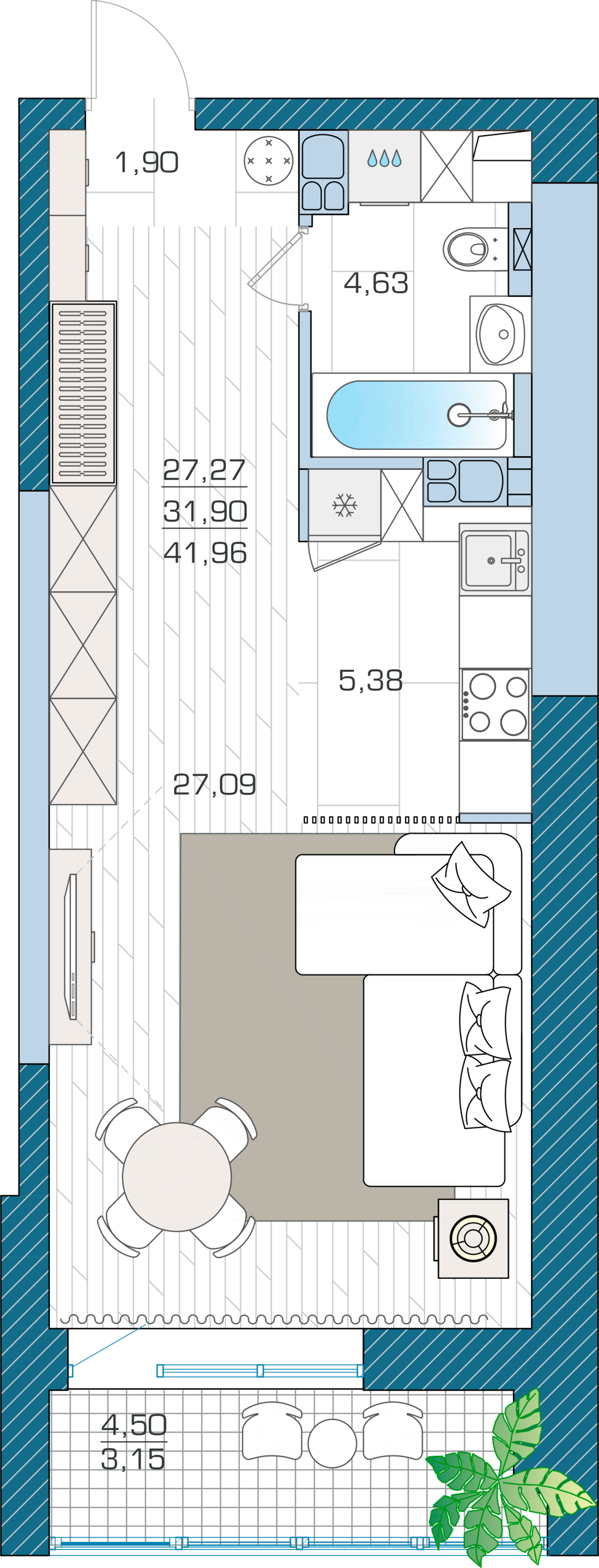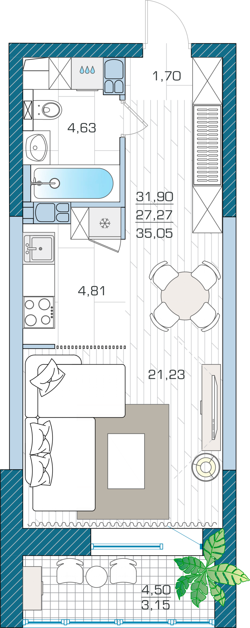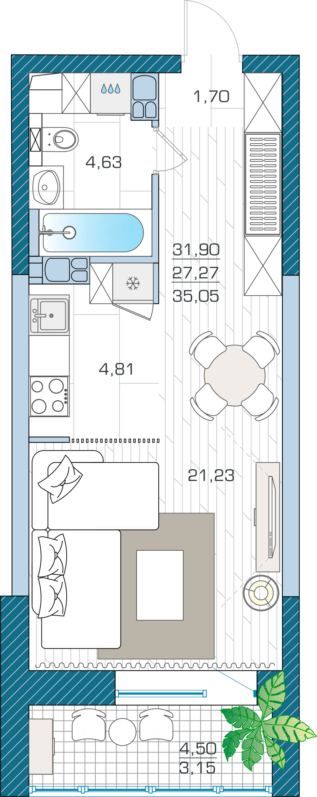 - Свободные планировки с частичным возведением межкомнатных перегородок и высокие потолки 2,7 метра.