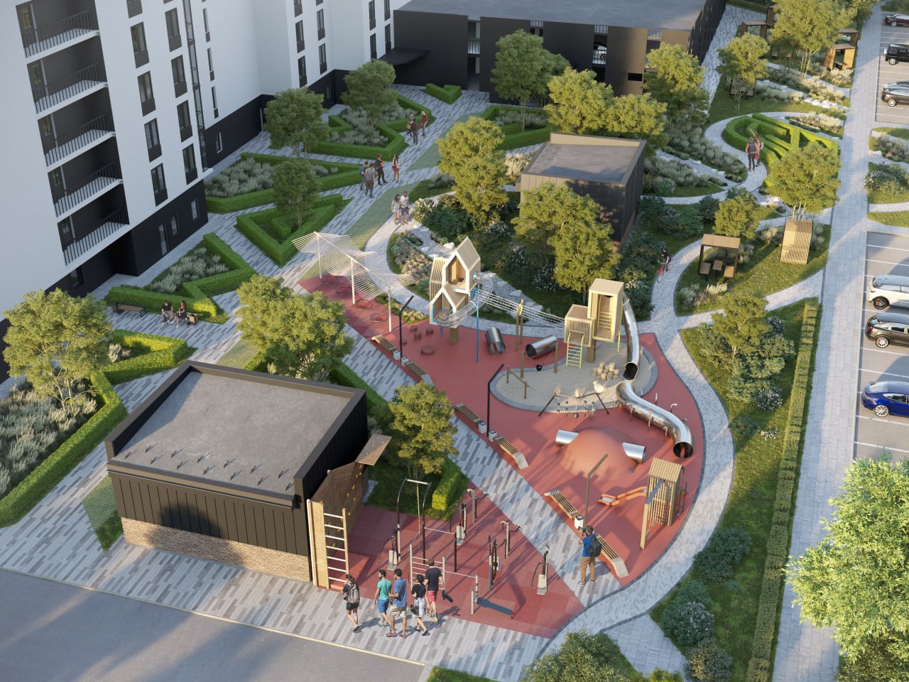 - Без Машин: Внутренняя территория ЖК полностью закрыта для автомобильного движения. Машины надежно спрятаны в пристроенный двухэтажный паркинг, освобождая двор для безопасных прогулок, игр детей и спокойного отдыха взрослых.