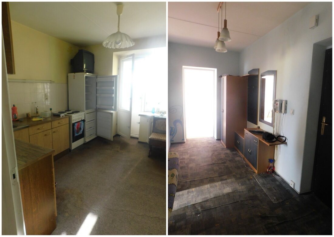 Собственником жилья является ОАО «ММЗ имени Вавилова — управляющая компания холдинга «БелОМО». Идентичные по планировке двушки находятся в одном подъезде, на 6 и 7 этажах. Площадь первой квартиры составляет 62 квадратных метра. Она состоит из кухни, двух комнат и большой лоджии. Внутри — стандартная отделка, которая нуждается в обновлении.