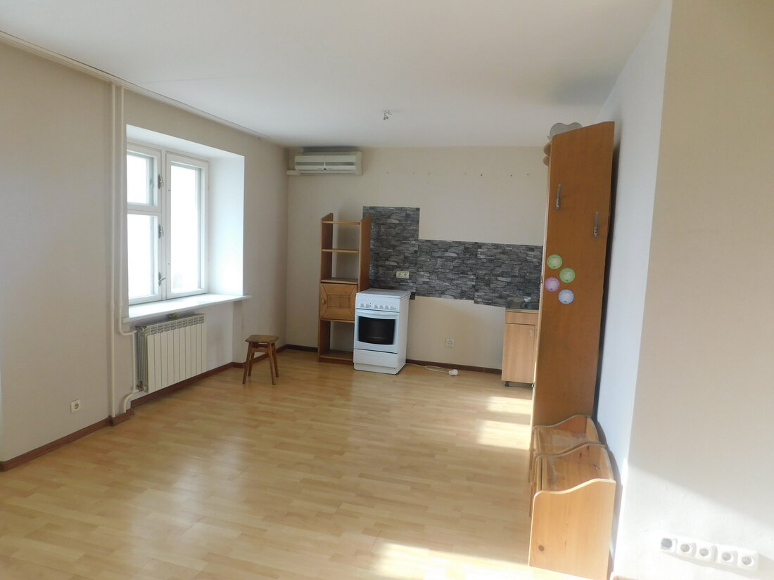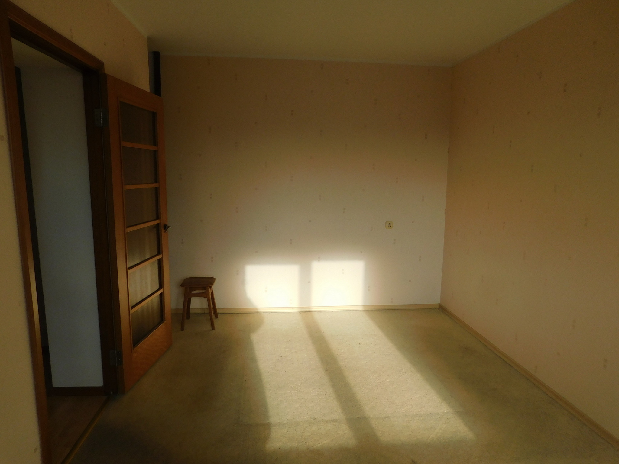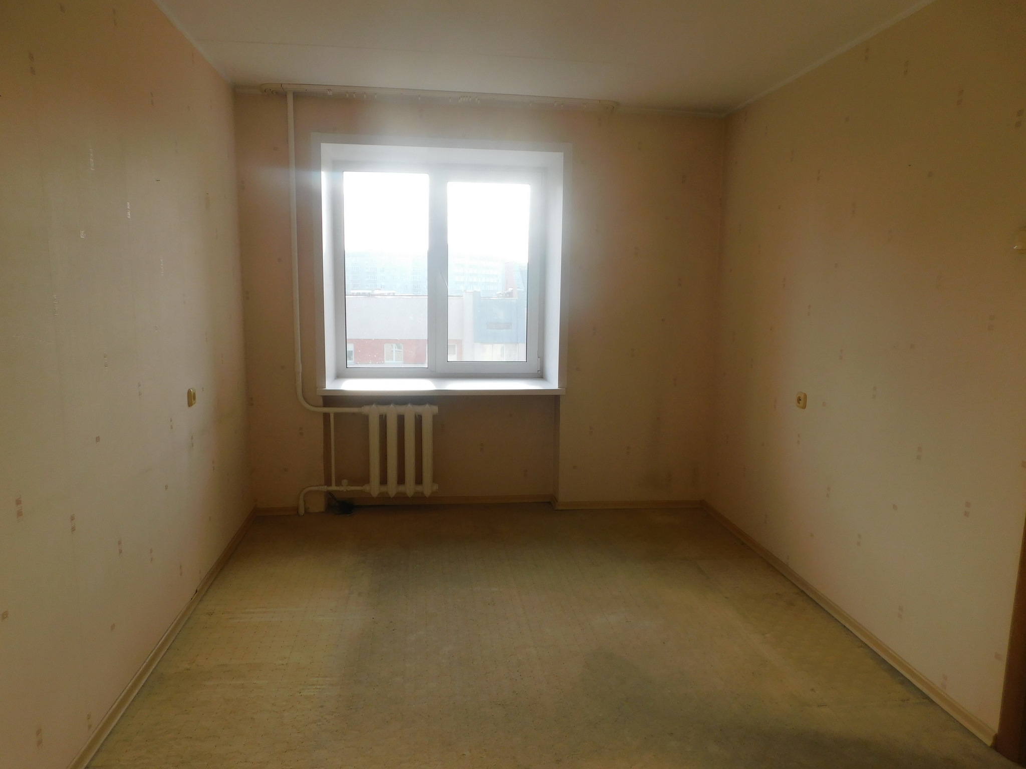 Площадь квартиры этажом выше насчитывает 63 квадратных метра. Состояние ремонта в ней можно назвать удовлетворительным. Это жилье практически освобождено от мебели. Из особенностей можно выделить большой совместный санузел и просторную лоджию.