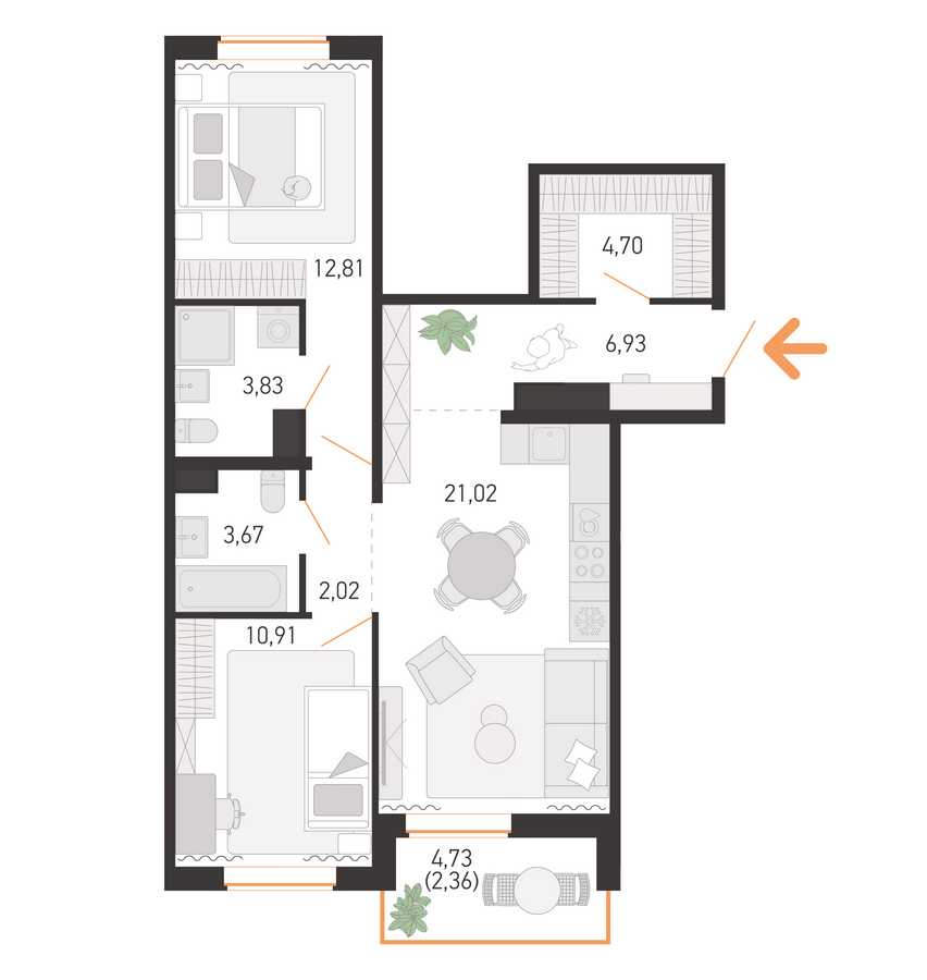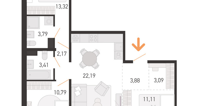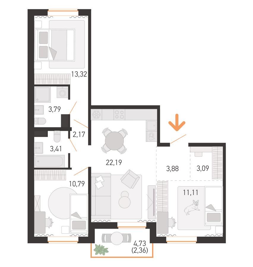 Еще одно достоинство дома — удачное расположение между улицами Небесная и Пилотная. В шаговой доступности будут Арт-бульвар, театральный сквер и детская площадка «Живопись». А ещё коммерческая и социальная инфраструктура со школой и детскими садами. Автомобиль можно будет оставить на большом паркинге рядом с двором.