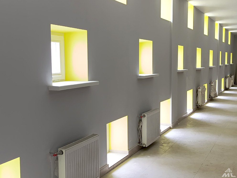 В 20-м квартале жилого комплекса Минск-Мир завершается строительство новой современной школы на улице Н.Теслы. Это уже вторая школа, возведенная трестом № 35 и генподрядным филиалом СУ-201 в этом активно развивающемся районе столицы. Сейчас строители сосредоточены на отделке помещений и благоустройстве прилегающей территории, чтобы к началу учебного года двери школы распахнулись для учеников.