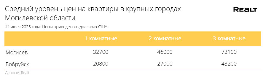Для сравнения приведем средние цены на квартиры в других городах Беларуси: