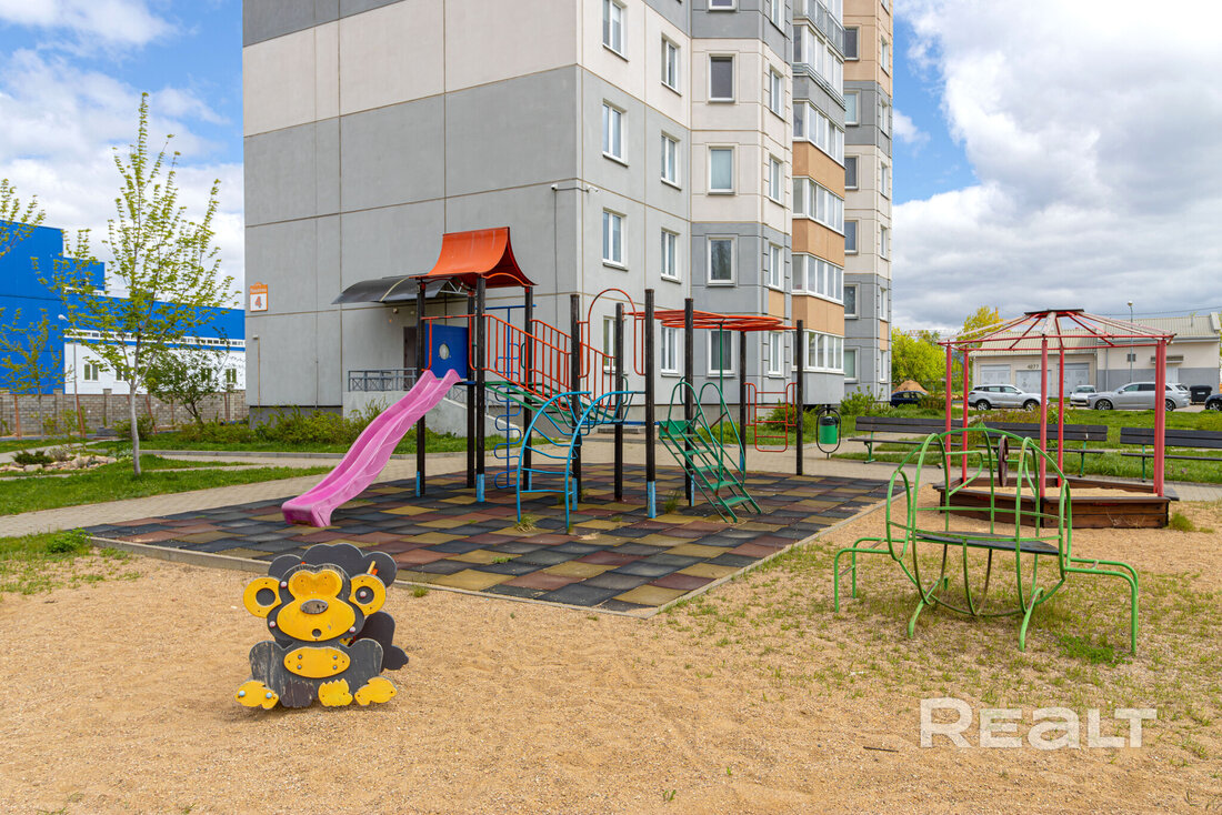Стоит отметить, что у панельного дома — весьма престижное месторасположение. Совсем рядом располагается проспект Независимости, Парк Челюскинцев, Национальная Библиотека, торговый центр «Дана Молл», Слепянская водная система, велодорожки, а также детский сад, школа и различные магазины. В шаговой доступности находится и станция метро «Московская».