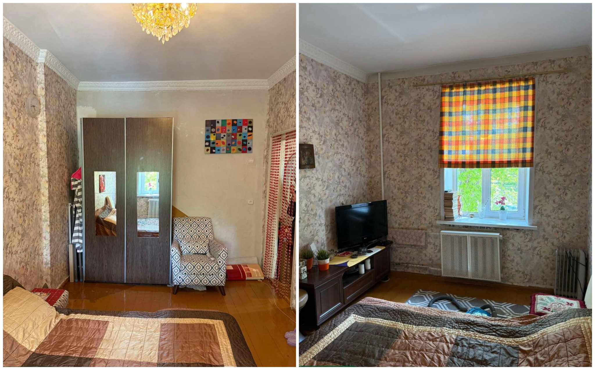 Жилье также нуждается в обновлении. На полу лежит дерево, установлены деревянные рамы. Высокий потолок украшает лепнина.