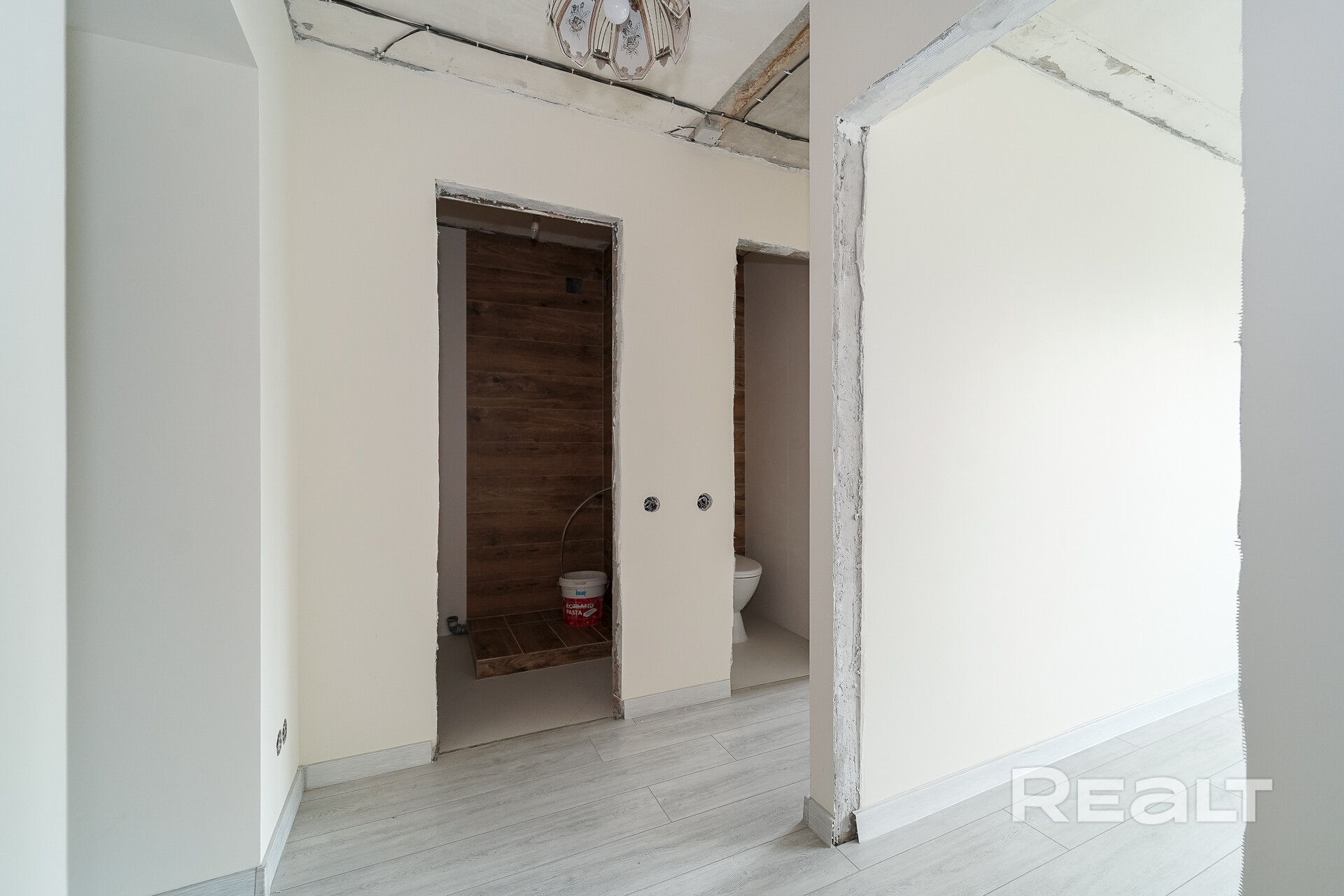 В квартире недоделанный ремонт: дополнительно заменена электропроводка, на полу лежат ламинат и плитка, стены покрашены Tikkurila, установлены ПВХ-окна.
