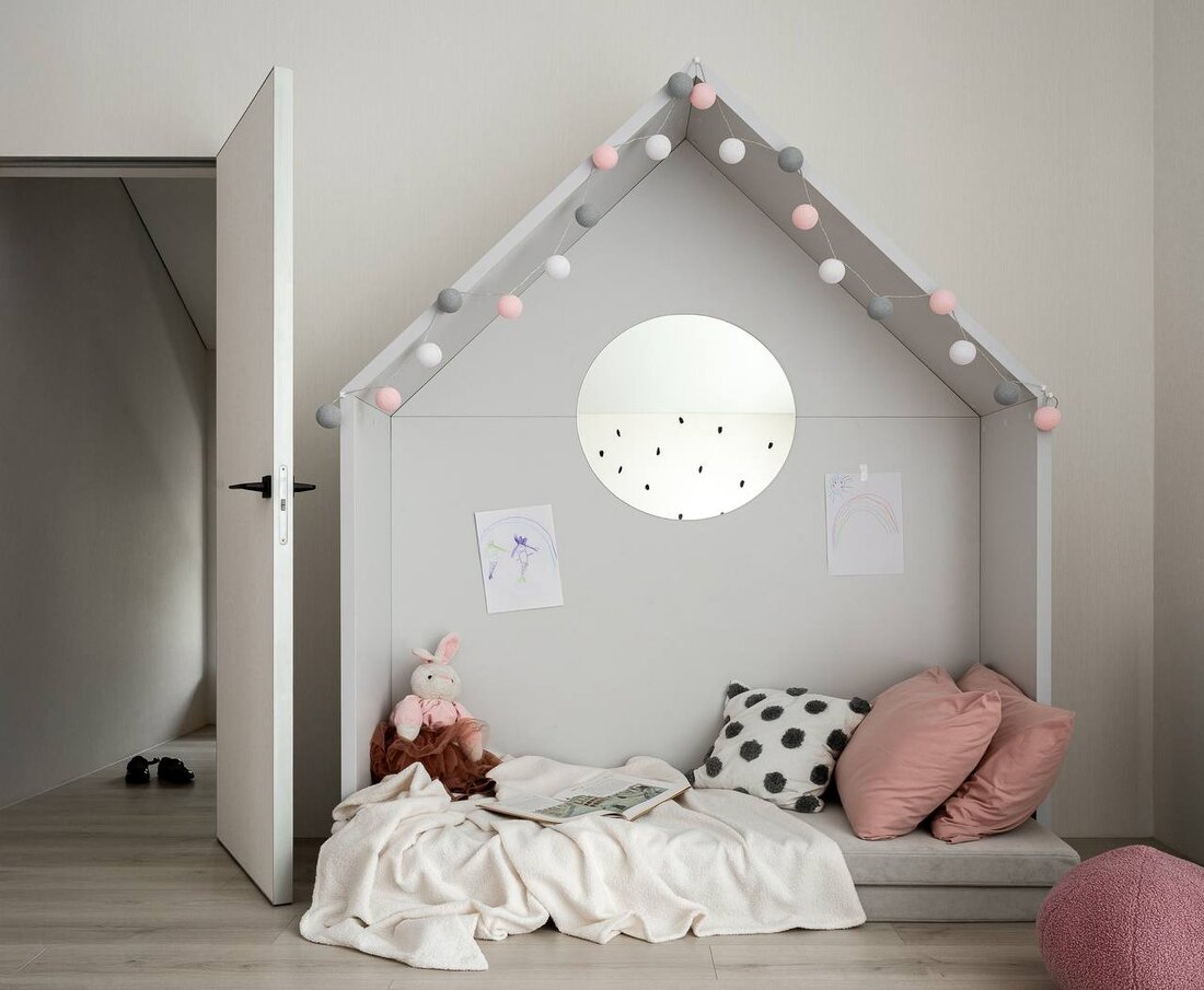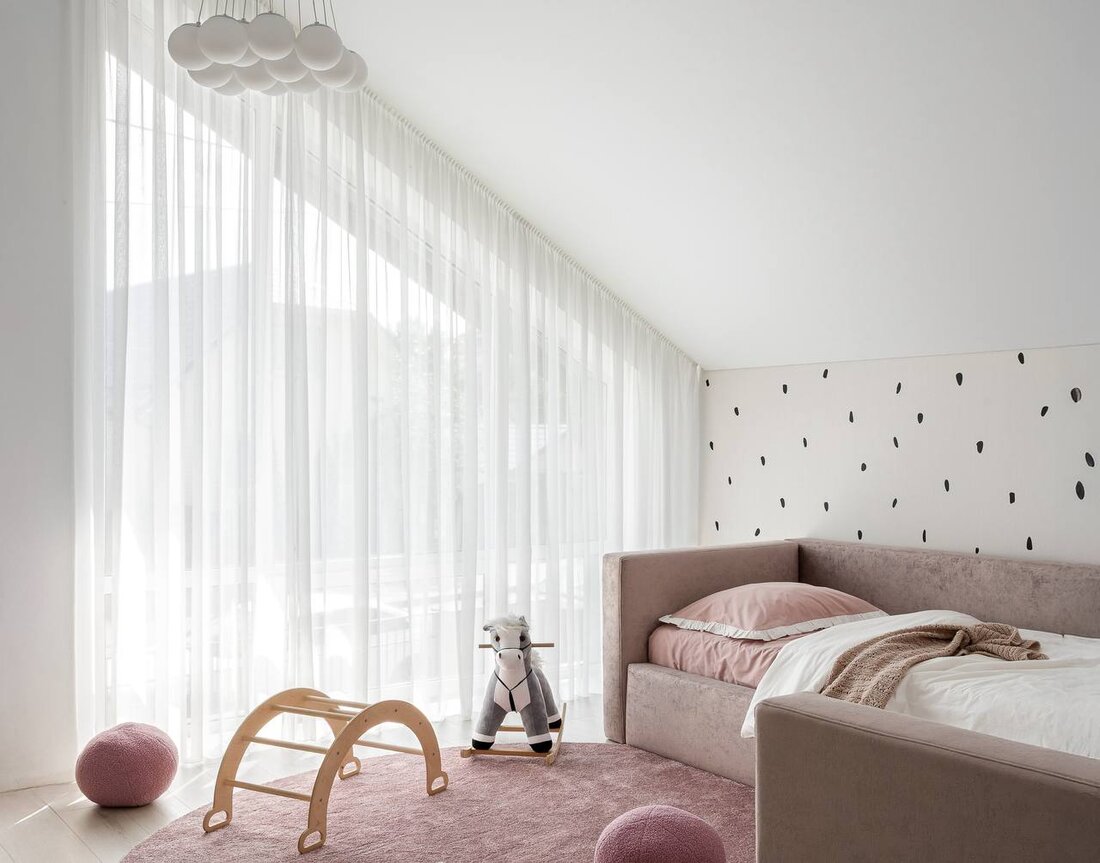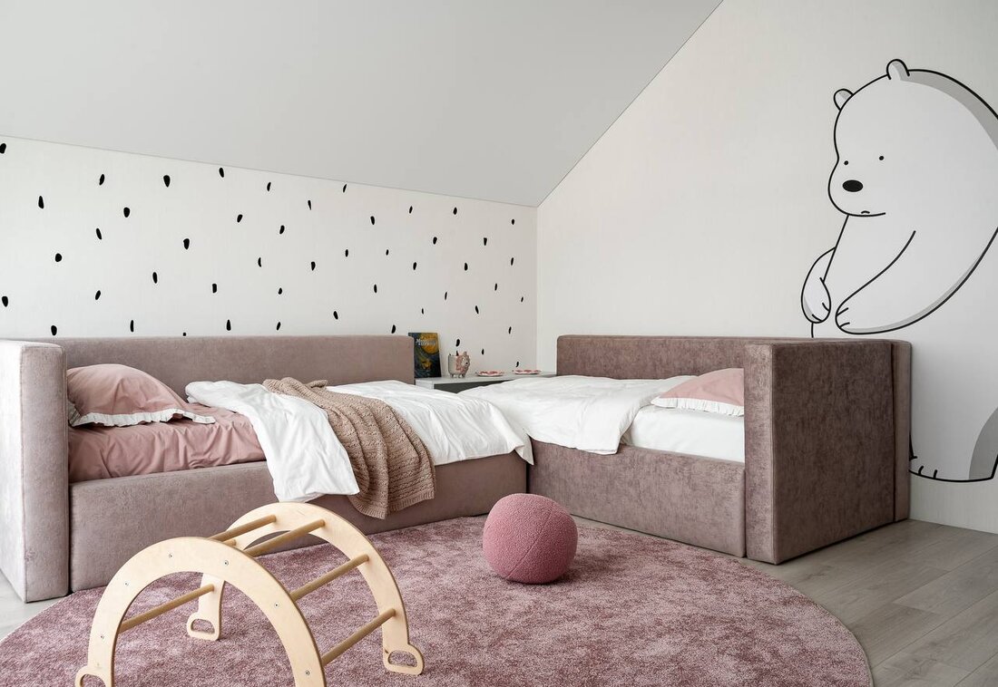 Помимо небольшой корректировки кухни-гостиной, Маша Бергер полностью оформила остальные помещения в доме, включая детскую комнату для двух хозяйских дочек.