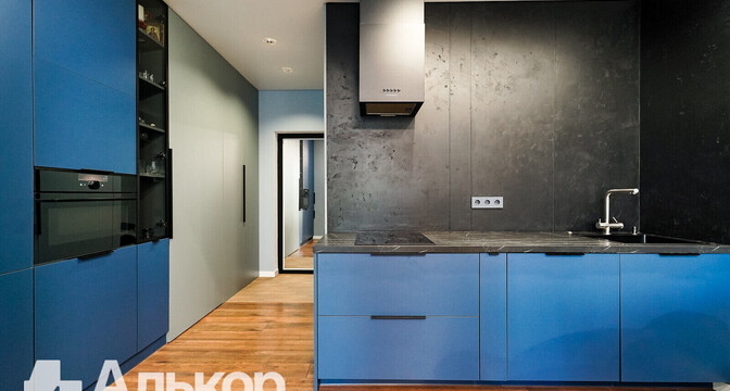 Общая площадь — 50 метров. Метраж кухни, совмещенной с гостиной, — 22 метра. Из техники есть встроенный холодильник Smeg, фильтр для очистки воды, духовой шкаф, варочная панель, измельчитель пищевых отходов.
