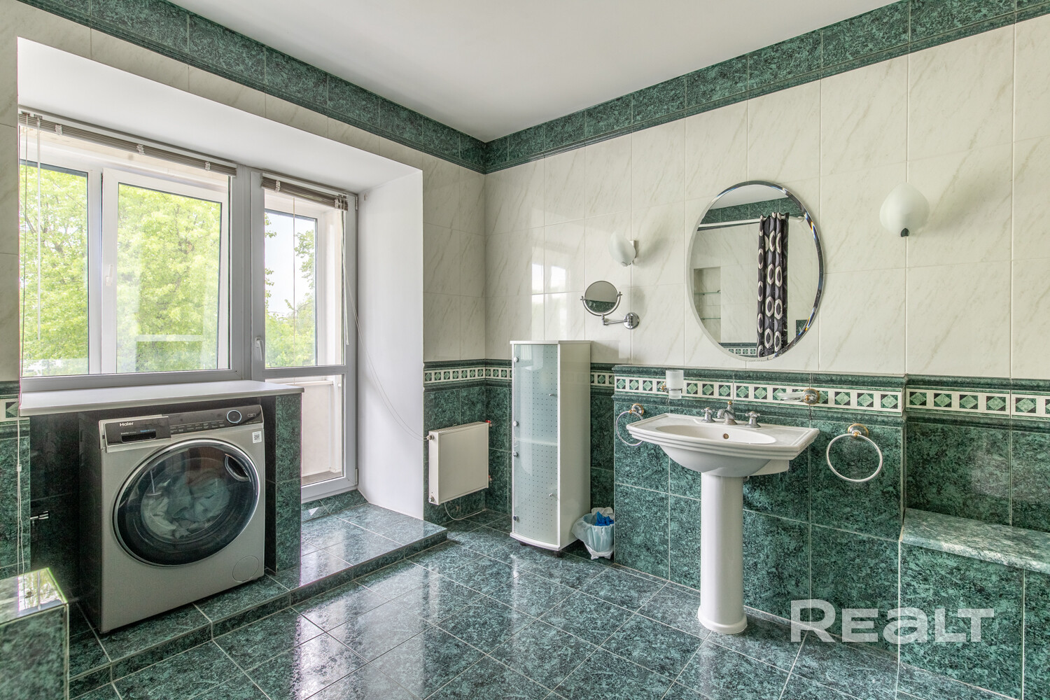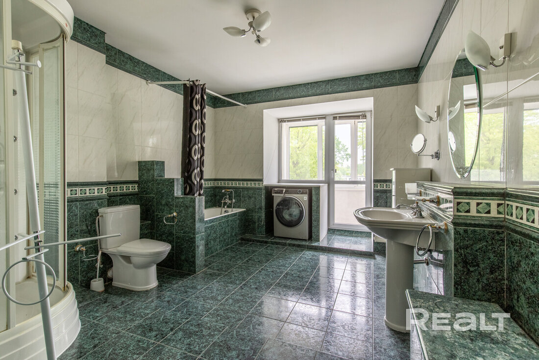 В четырехкомнатной квартире предусмотрено два санузла. Каждый из них порадует новых жильцов качественно уложенной плиткой и хорошей сантехникой. Особенно интересен основной санузел площадью 12 квадратов (как полноценная комната!) — в нем есть не просто большое окно, а обустроен выход на лоджию.