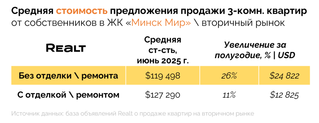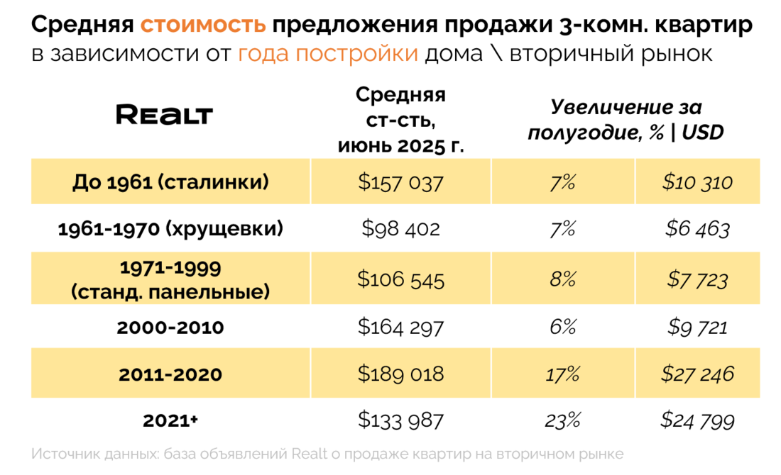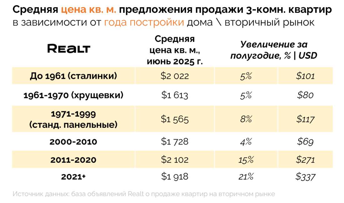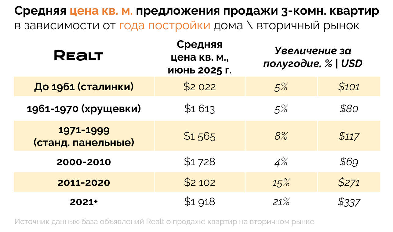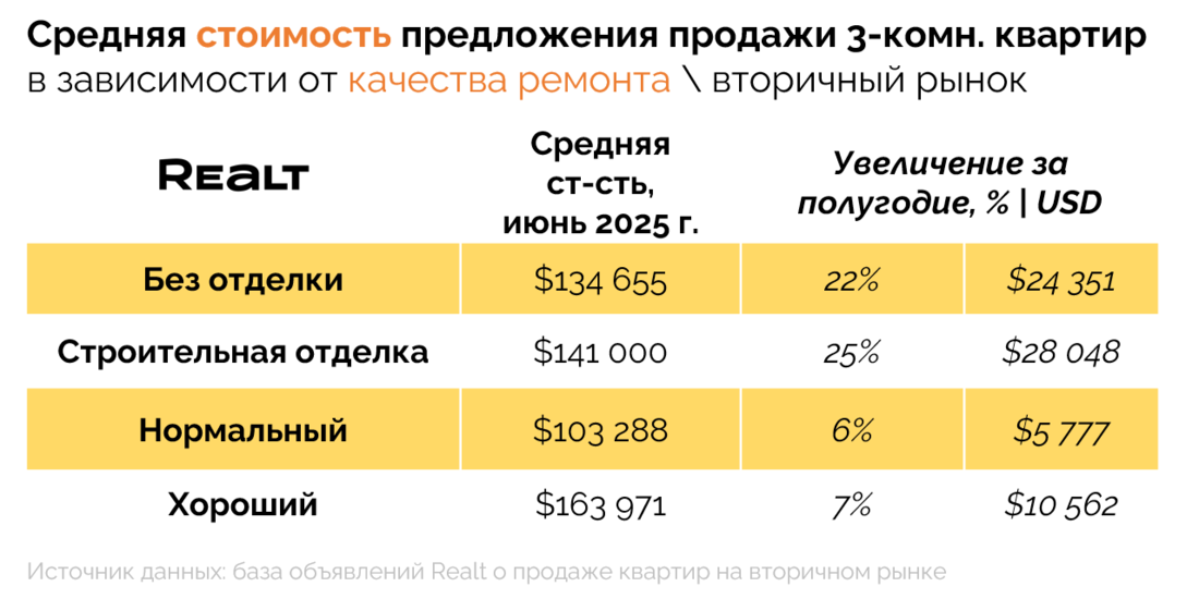 Несмотря на то, что цены растут уже не первый год, в текущем году они делают это особенно быстро. Если за весь прошлый 2024 год, квартиры в объявлениях на Realt подорожали в среднем на +9% или +120 USD\кв. м., то за половину текущего года рост цен предложения уже составил внушительные +12% или +200 USD\кв. м. При этом только за июнь цены прибавили +2% или +40 USD\кв. м.