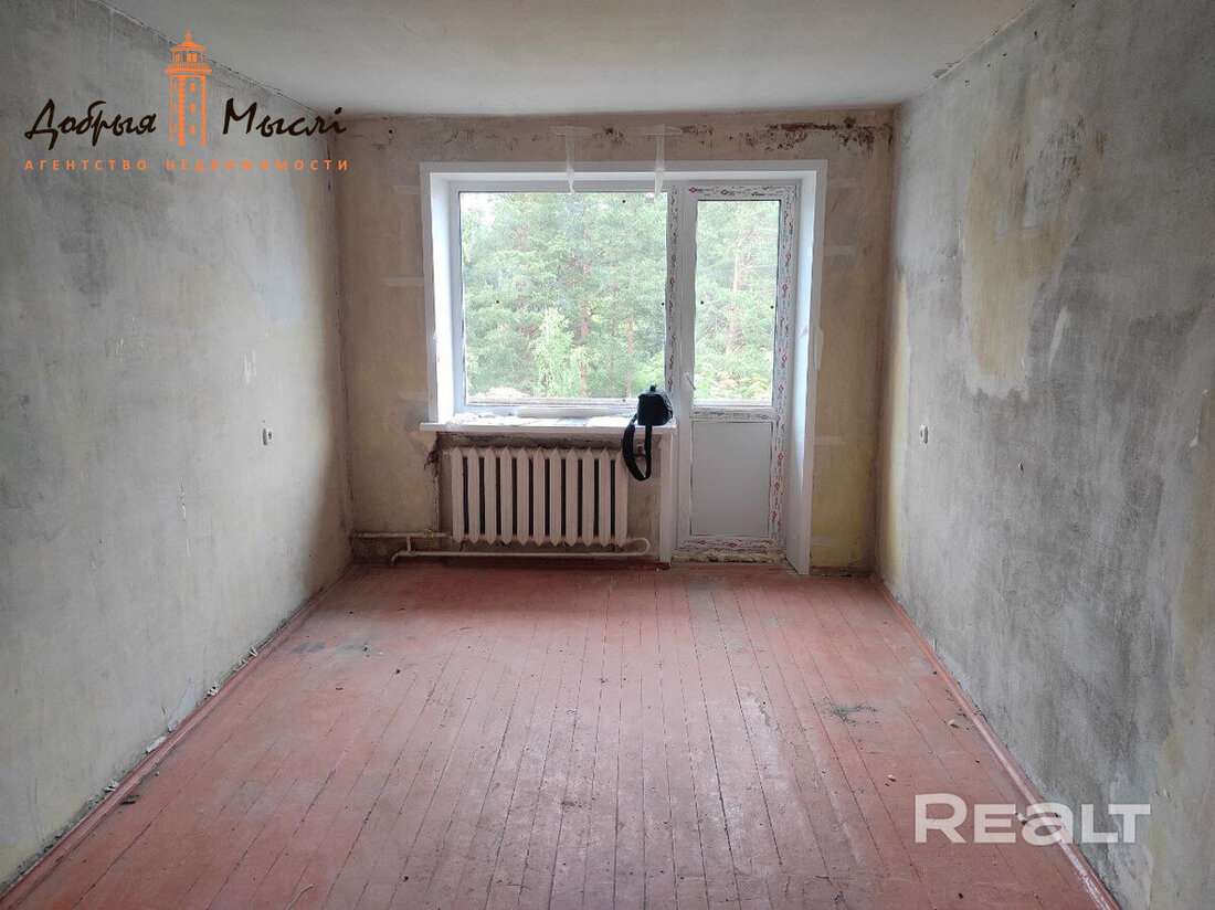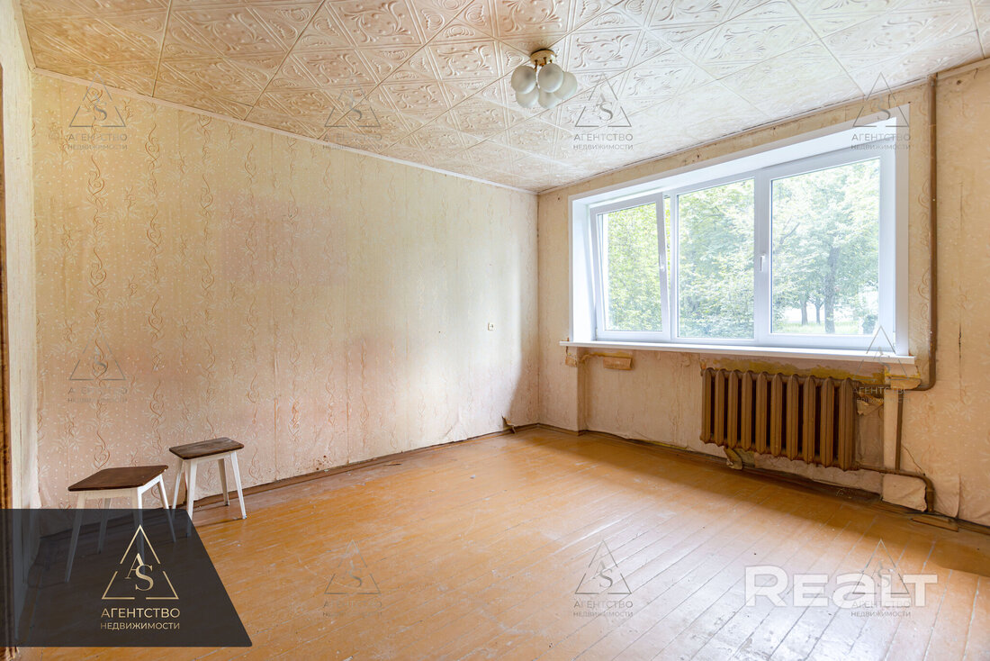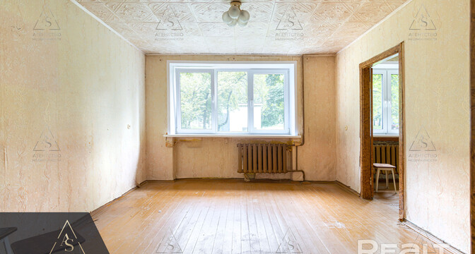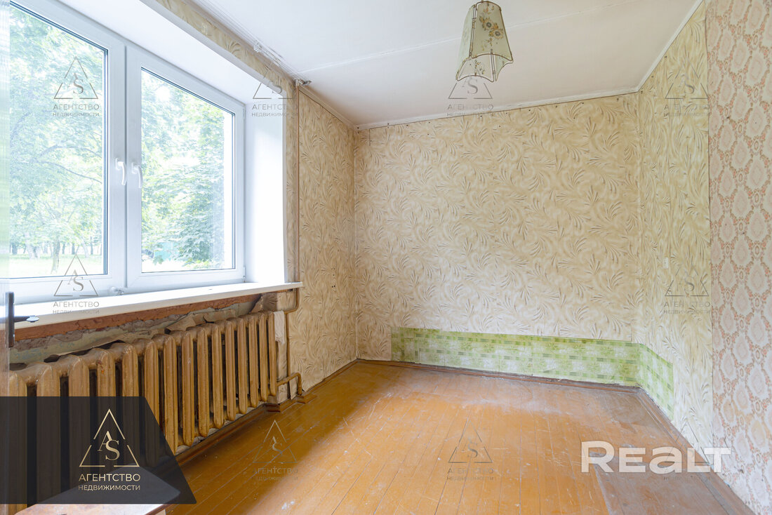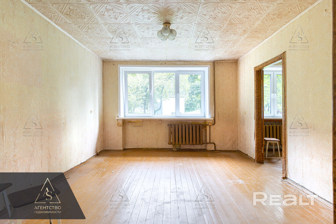 Одна из комнат — проходная. Квартира нуждается в обновлении.