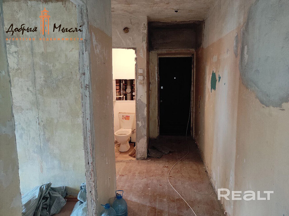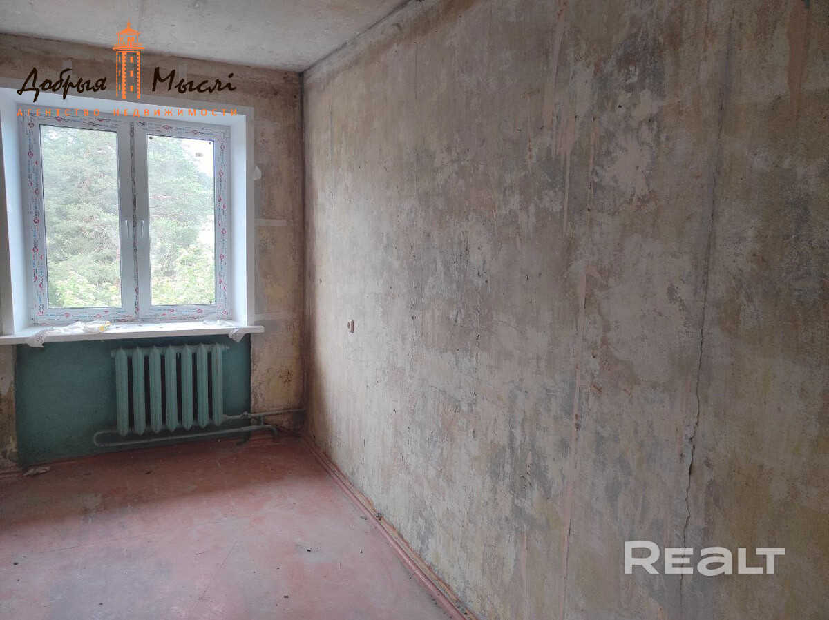 Все комнаты — изолированные. Квартира под ремонт: сняты все старые обои, межкомнатные двери, в окнах установлены стеклопакеты, есть металлическая входная дверь.