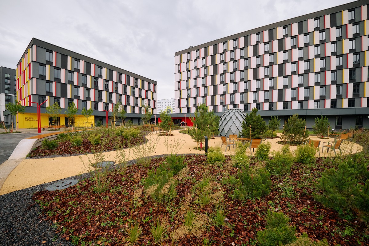 Поликлиника состоит из двух корпусов: семиэтажный корпус предназначается для взрослых, а четырехэтажный — для детей. Здания соединены общим служебным коридором, что позволит медперсоналу перемещаться между корпусами, не выходя на улицу. Комплекс рассчитан на 1330 посещений за смену: 450 в детском отделении, 880 во взрослом. Кстати, в поликлинике смогут обслуживаться жители не только Новой Боровой и деревни Копище, но и деревни Валерьяново.