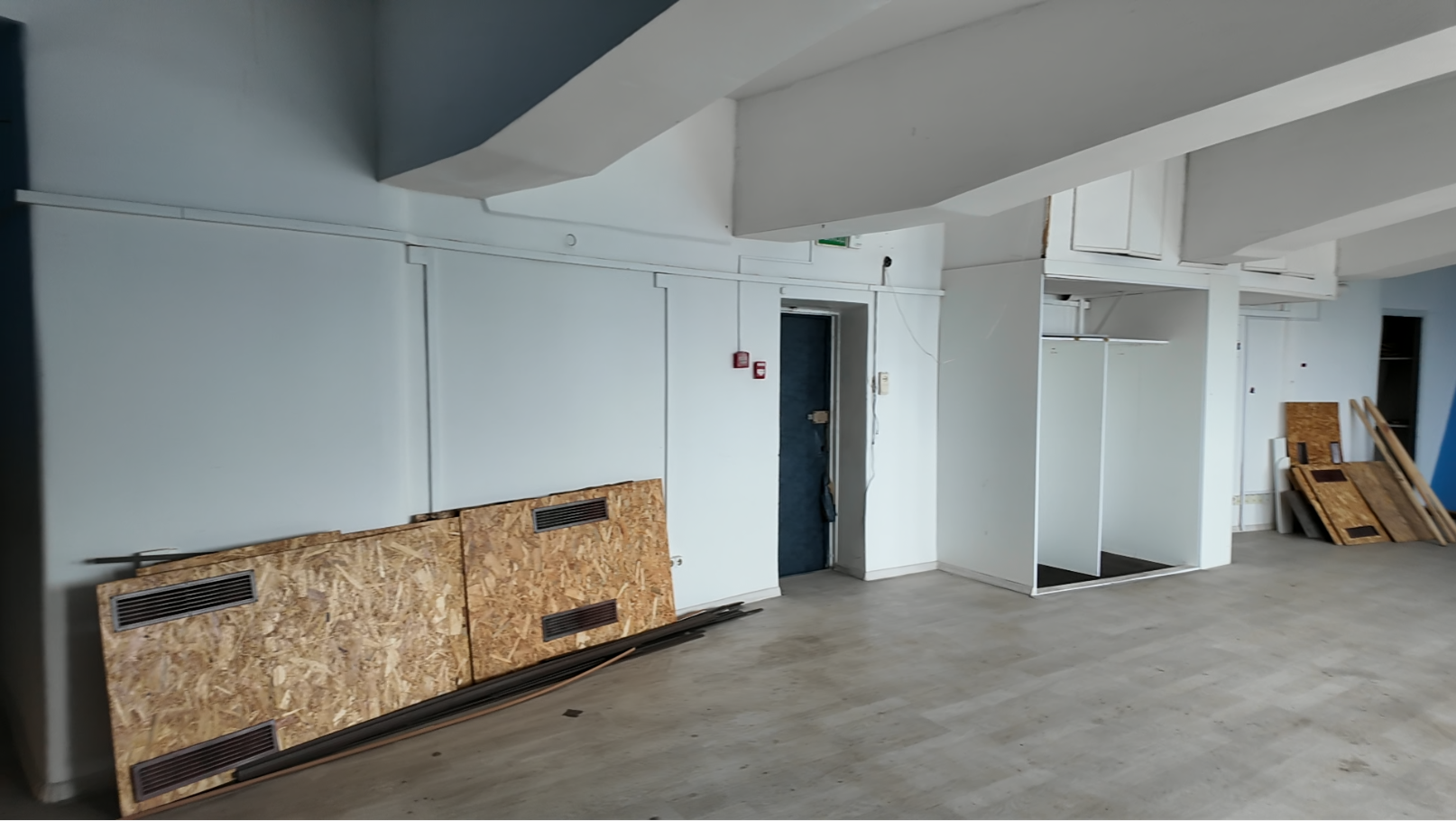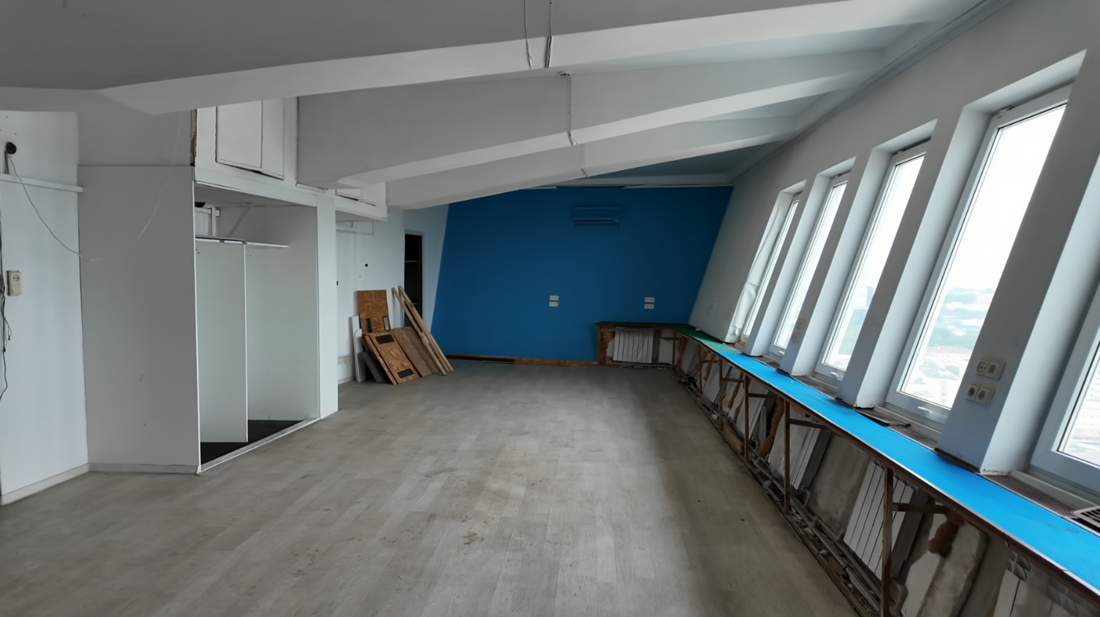 Также «Паритетбанк» выставил на аукцион помещение этажом ниже. Объект недвижимости площадью 158 квадратных метров располагается на 23-м уровне. Помещение может похвастаться необычными скошенными стенами и панорамными видами из окон.