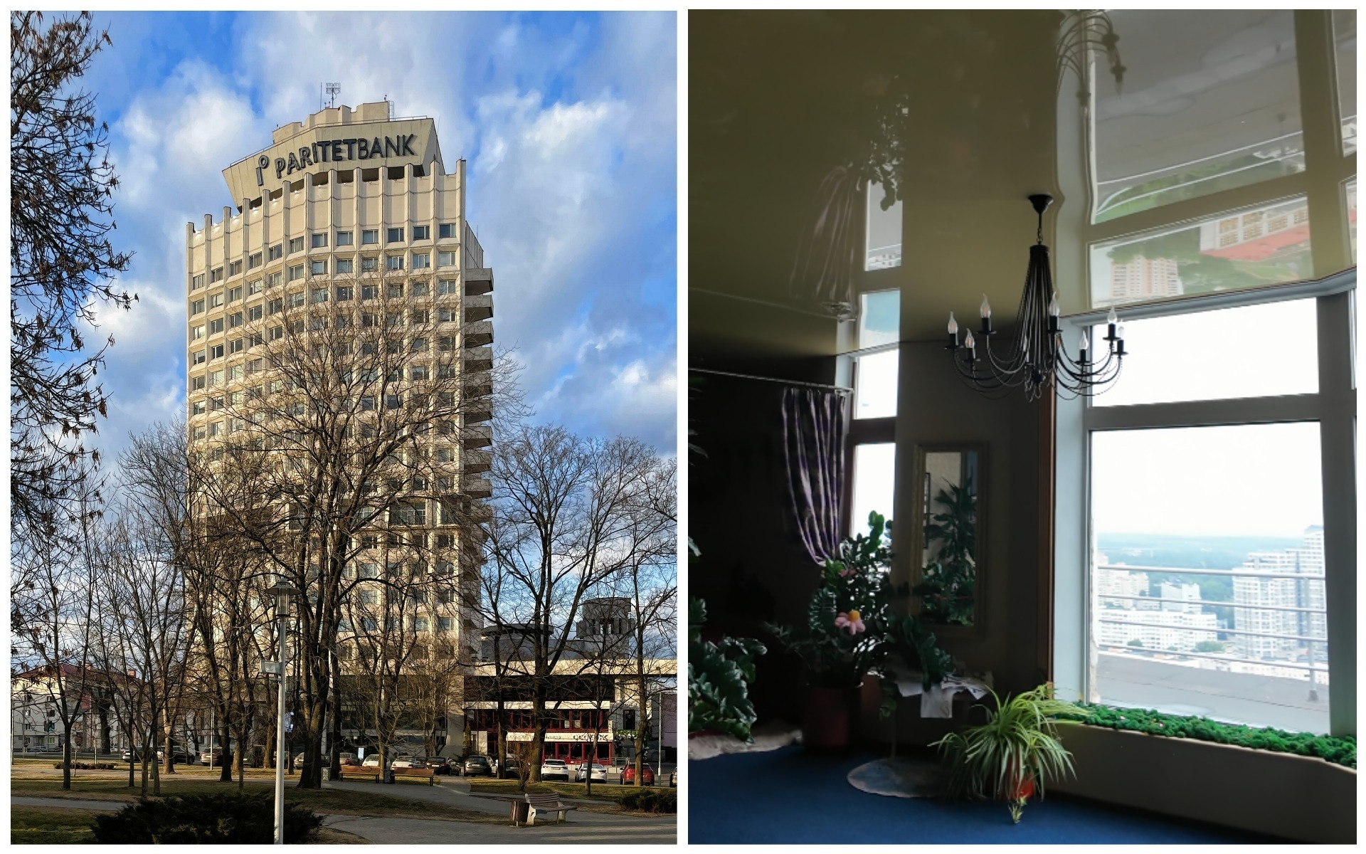 Сегодня большая часть советского небоскреба находится в собственности «Паритетбанка». Помещение площадью 43 квадрата, находящееся на 24-м этаже здания, также принадлежит этому банку.