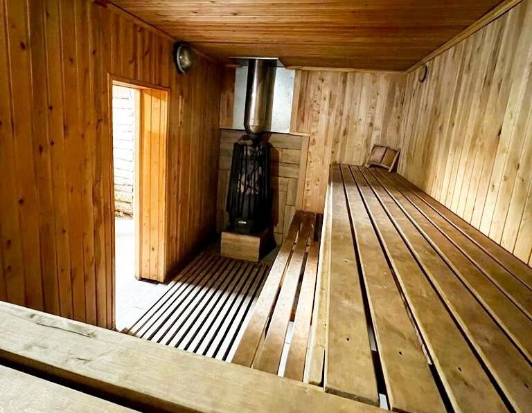 На территории имеется баня с большой парилкой из лиственницей — рассчитана на большую компанию.