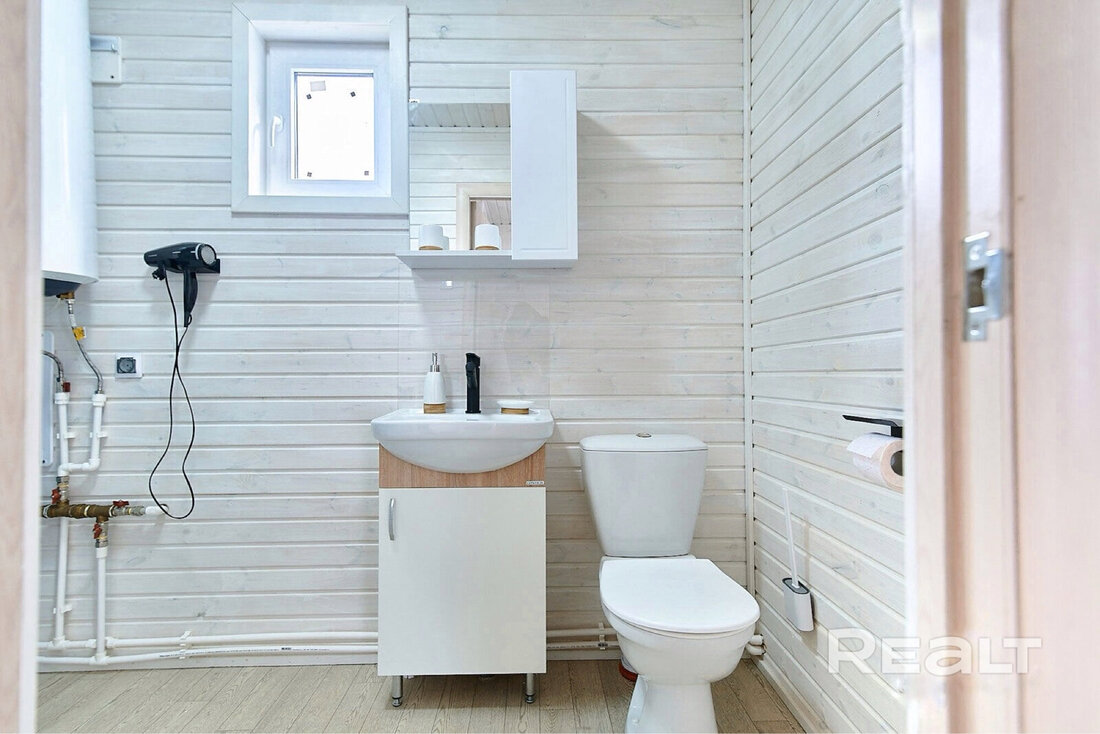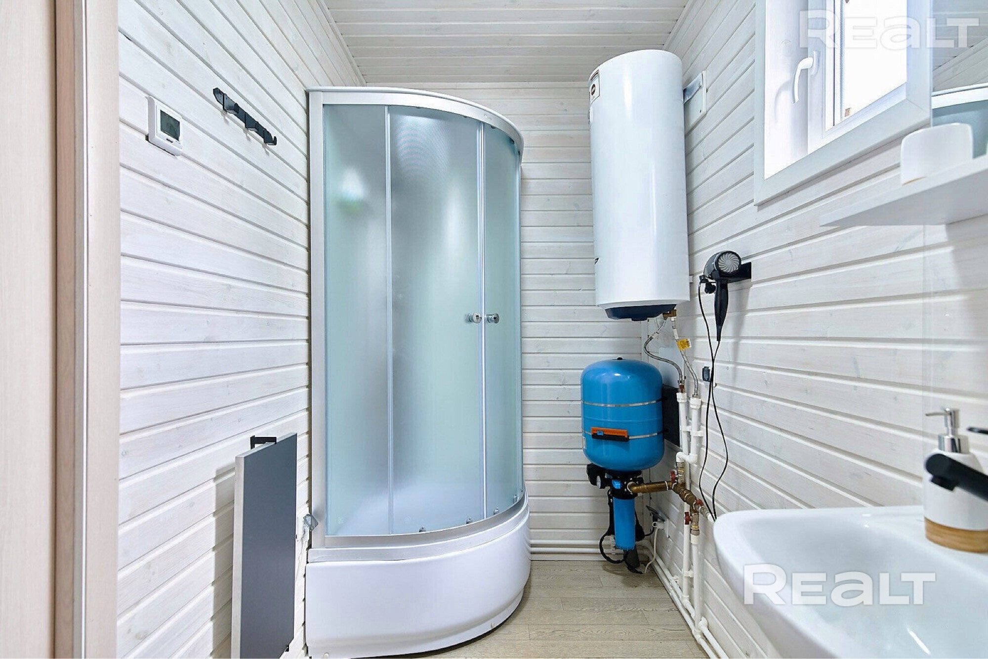В холодное время года дом эффективно отапливается с помощью электричества. Вода — своя скважина (140 метров), канализация — местная. Для жарких летних деньков предусмотрен кондиционер. В санузле установлена душевая кабина.