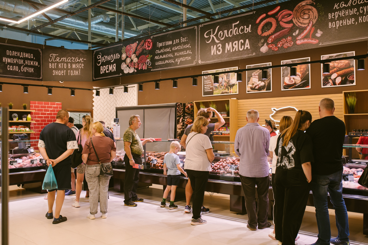 К открытию уже готовится новый магазин рыбы и морепродуктов под названием DiCarpio. А пока от морских деликатесов можно завернуть в сторону мясных продуктов. На рядах угощают вяленым мясом, дают попробовать колбаски и паштеты. Берите к ним фирменный соус, который можно найти в магазине «Пятачок» — блюдо станет еще вкуснее. Кстати, в самом торговом павильоне есть свежая вырезка и ребра, полуфабрикаты (хинкали, котлеты, чебуреки).