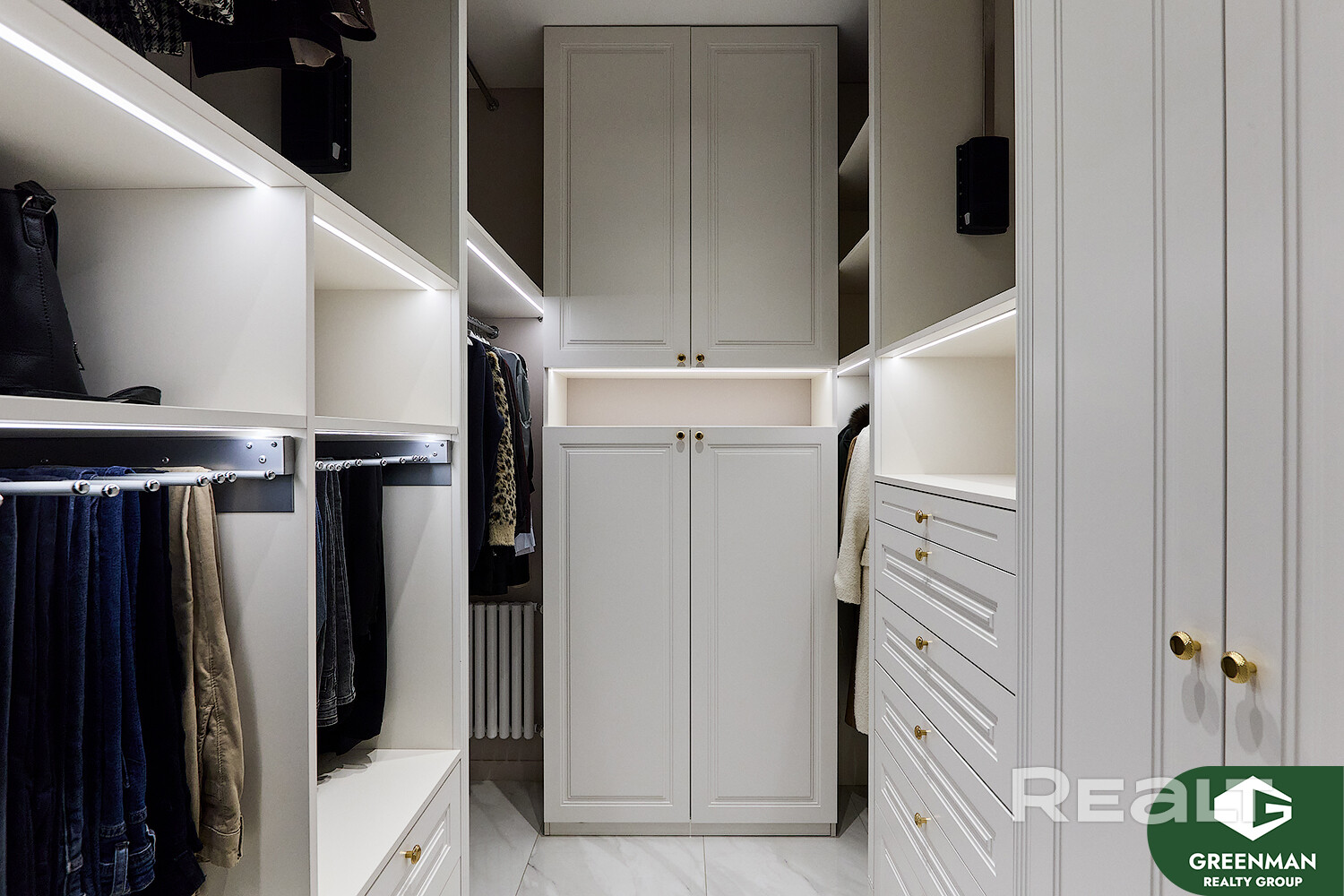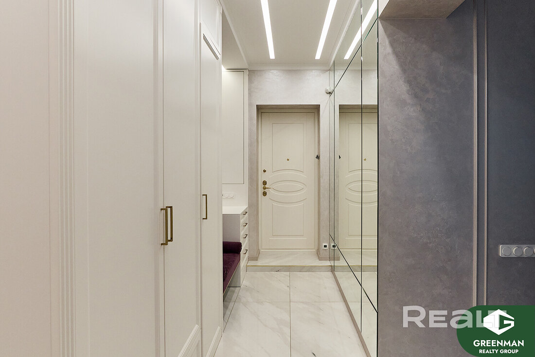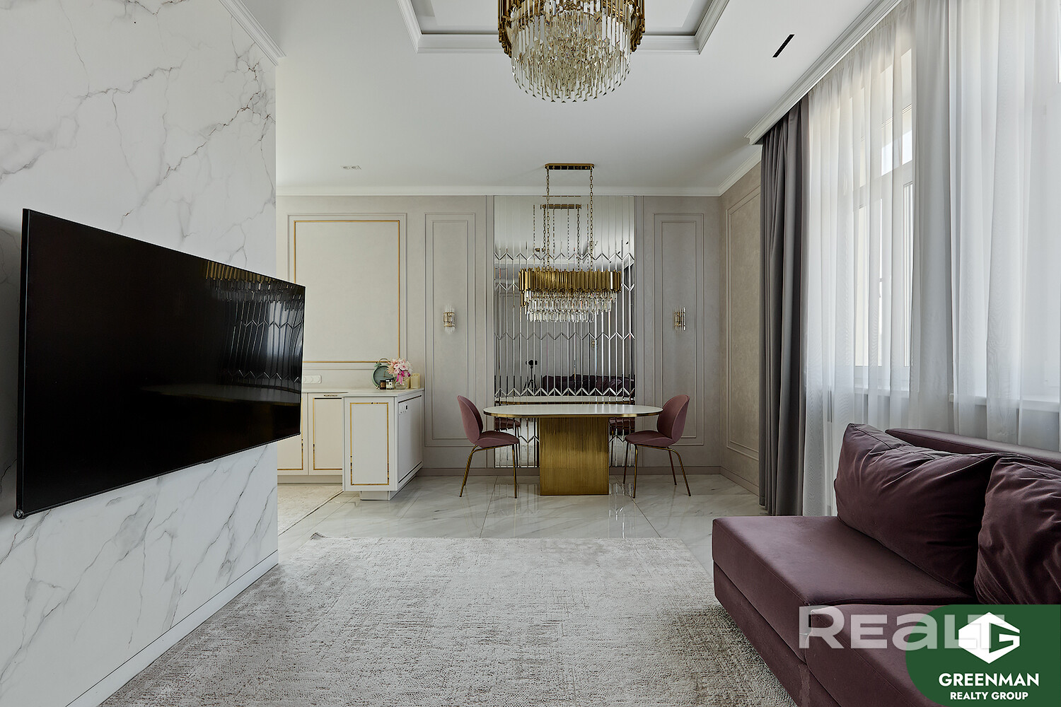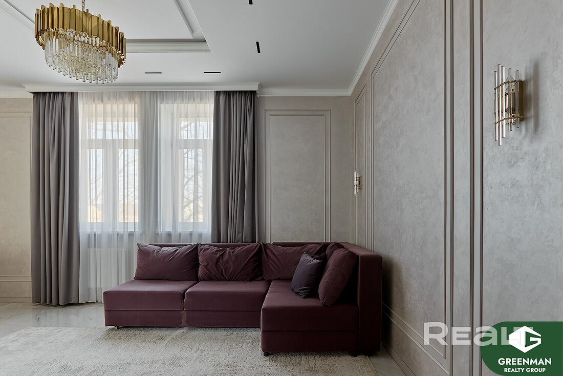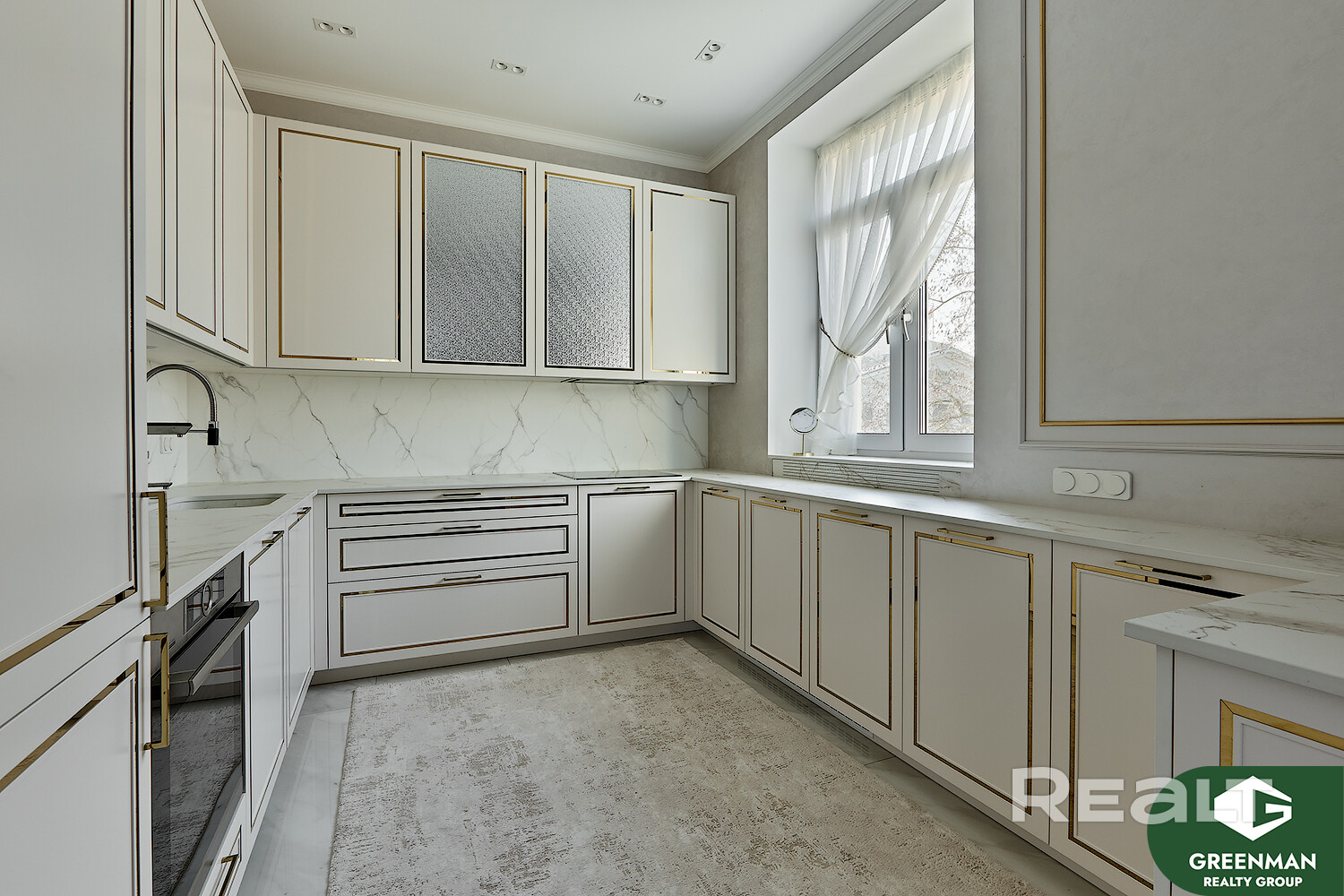 На полу залита стяжка во всех помещениях, установлены новые межкомнатные перегородки с шумоизоляцией, полностью заменены электрика и сантехника, имеется система кондиционирования. Напольное покрытие — итальянская плитка и парке (теплые полы).