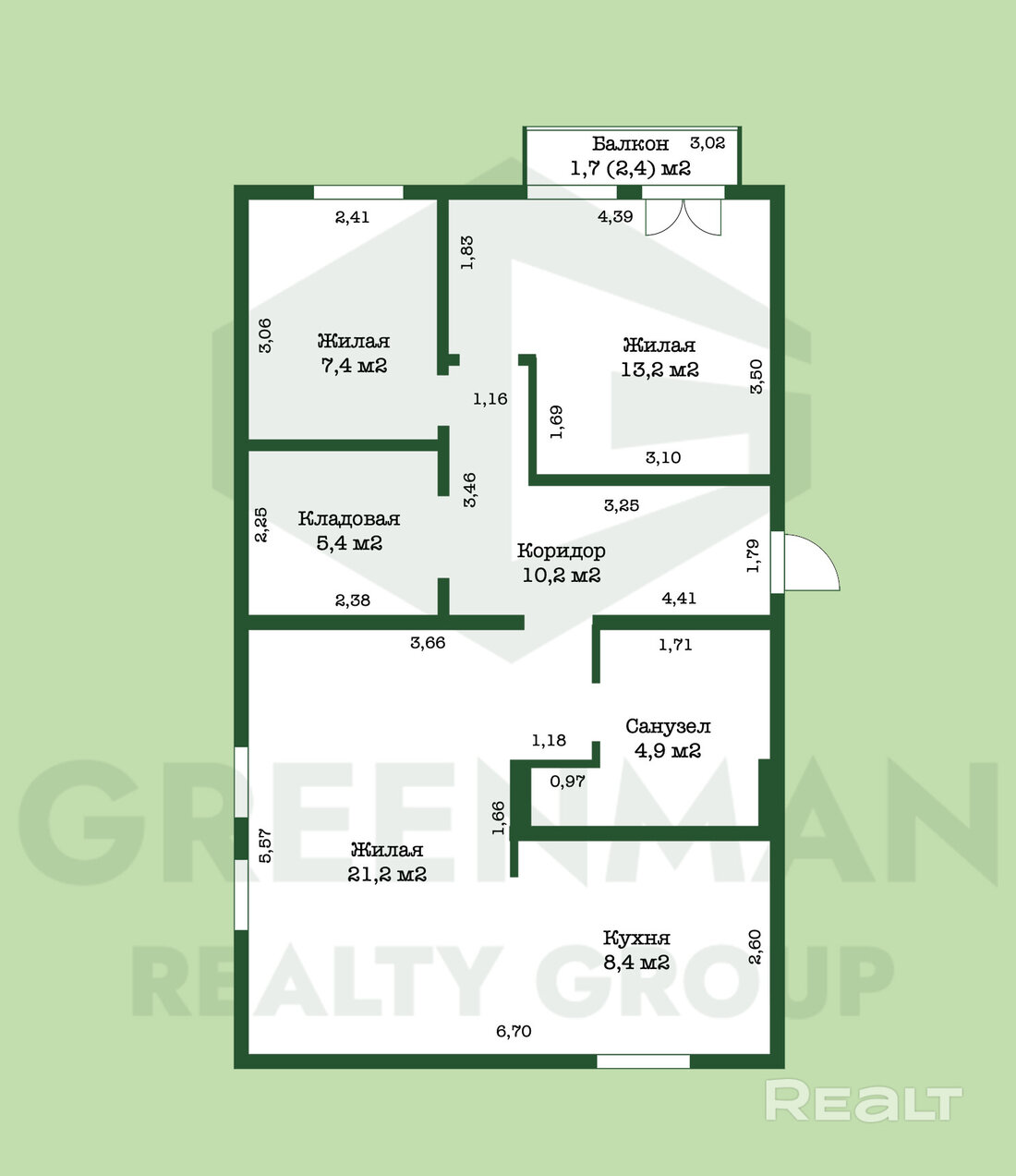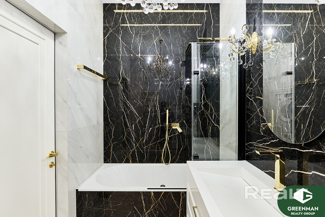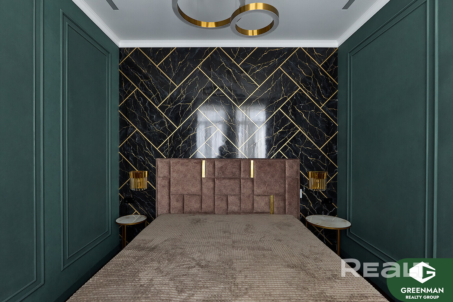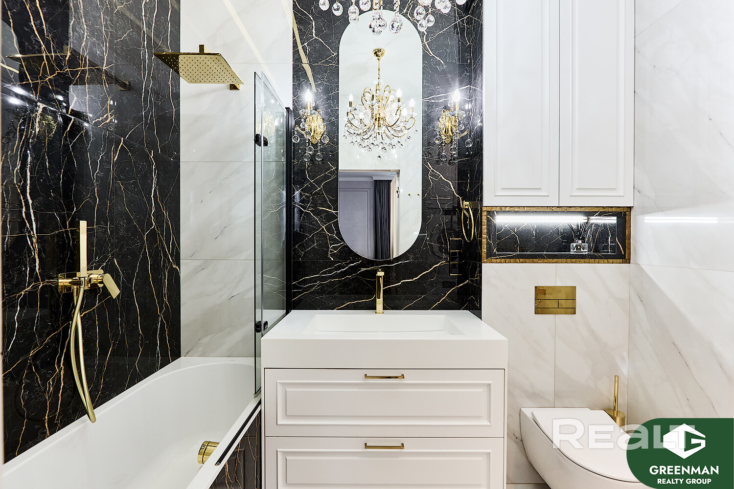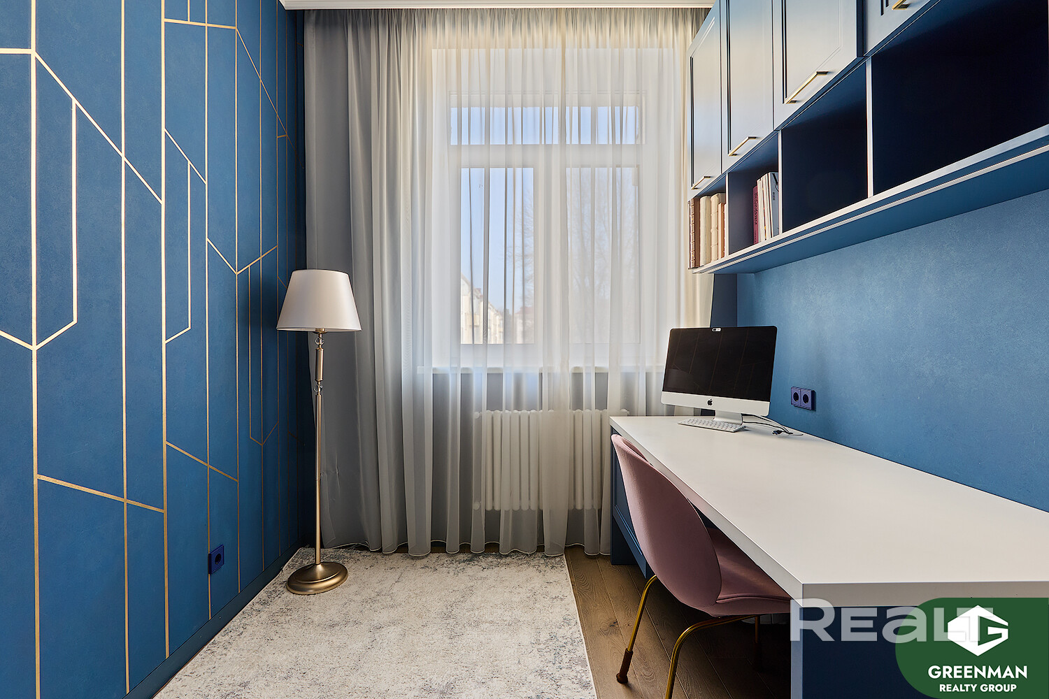 На полу залита стяжка во всех помещениях, установлены новые межкомнатные перегородки с шумоизоляцией, полностью заменены электрика и сантехника, имеется система кондиционирования. Напольное покрытие — итальянская плитка и парке (теплые полы).