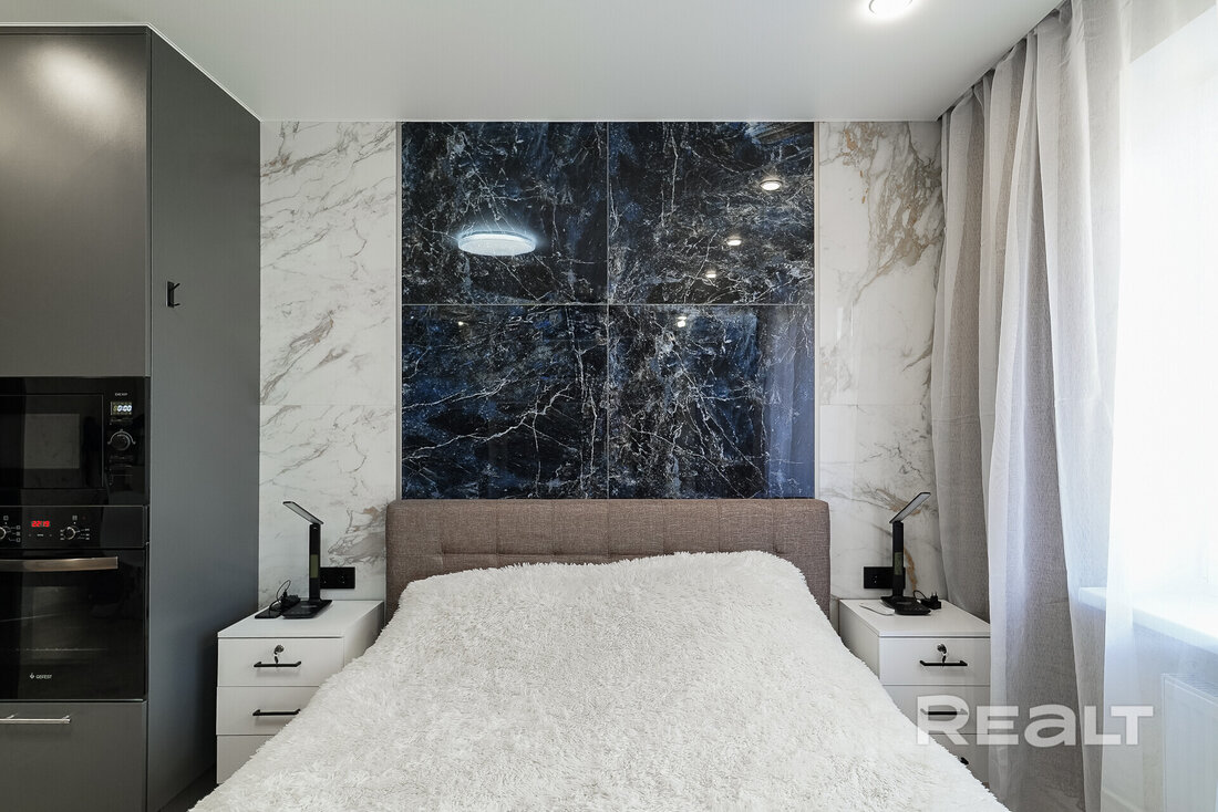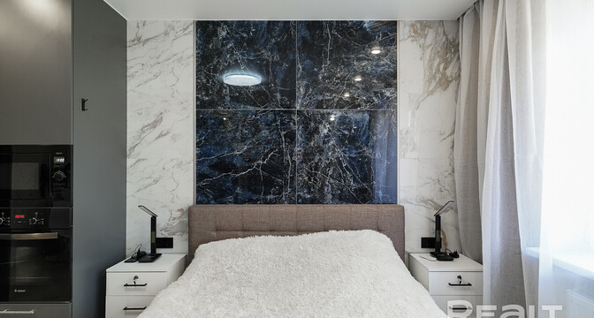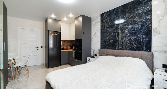 Еще один вариант для покупки — чуть более вместительная однушка площадью 25 квадратных метров. В этой студии на втором этаже дома по Брестской, 3/Б сделан стильный современный ремонт. Квартира полностью готова к переезду новых жильцов. Тут есть кухня, обеденная зона, двуспальная кровать и вместительный шкаф. Продают квартиру за 63,6 тысячи долларов (2524 доллара — за метр).