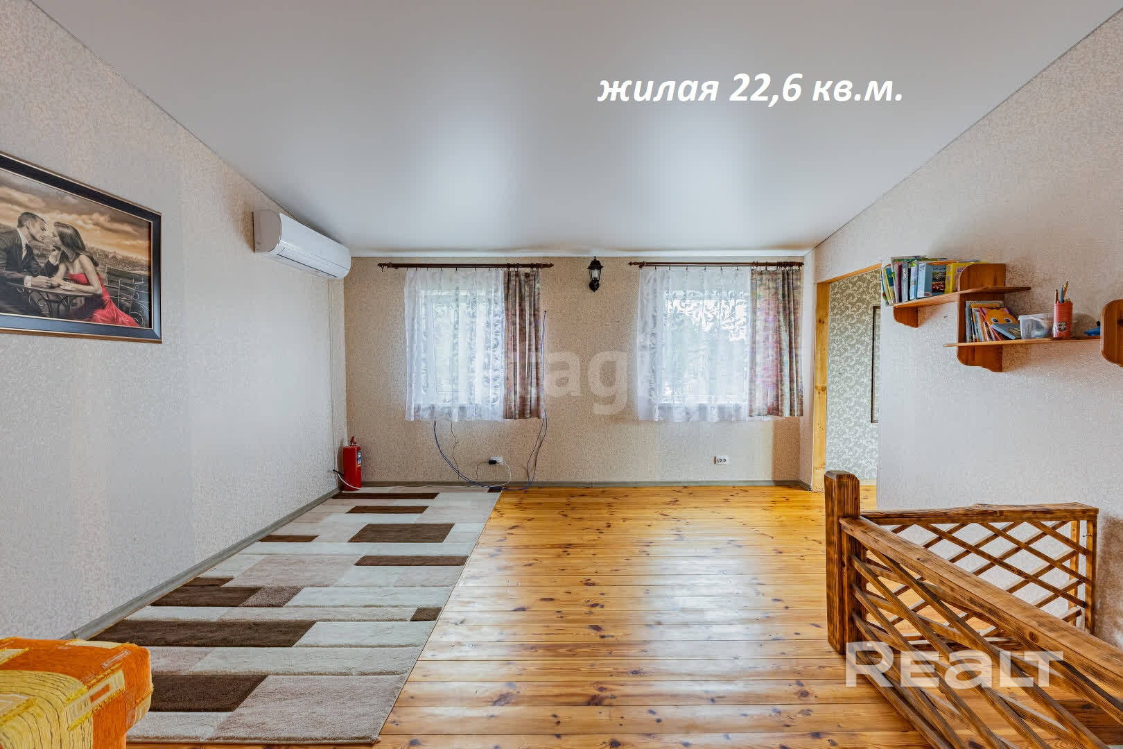 На втором этаже расположились три жилые комнаты. Все помещения имеют современную отделку, обставлены мебелью и техникой. Правда, судя по фото, в некоторых помещениях ремонт нуждается в небольшой доработке.