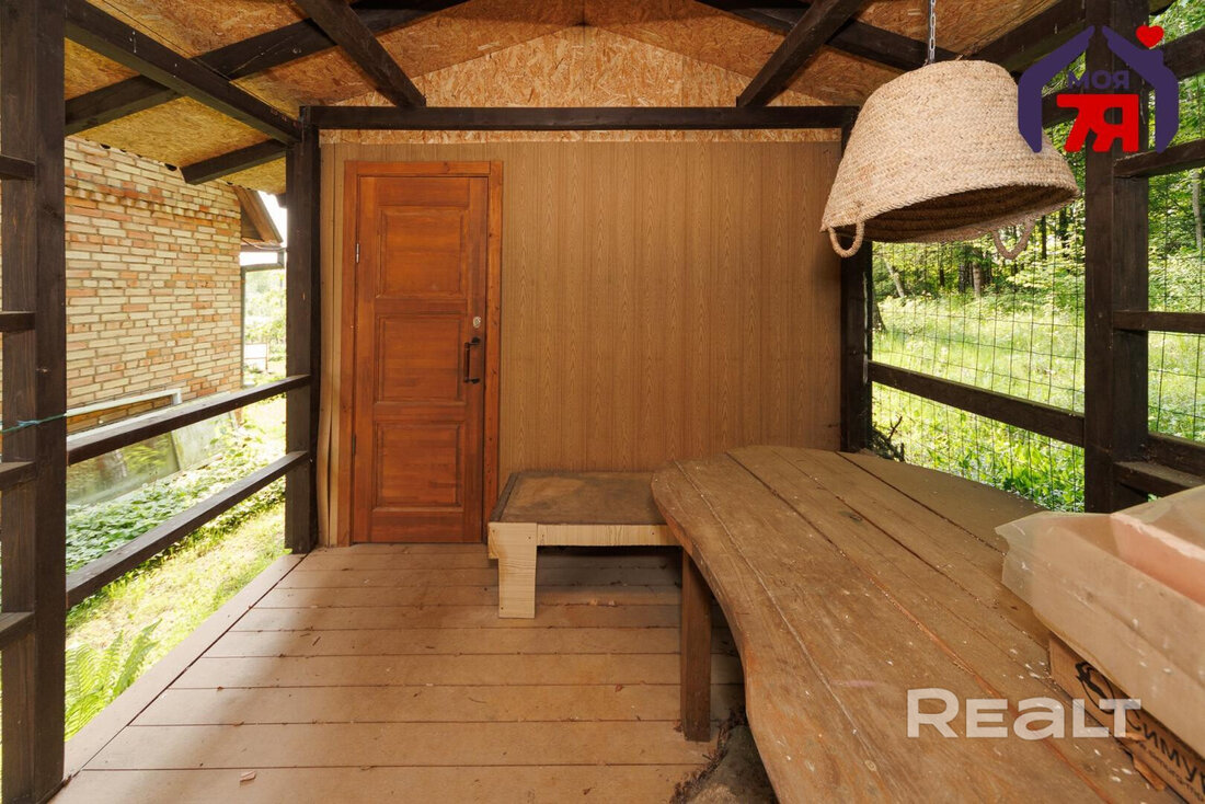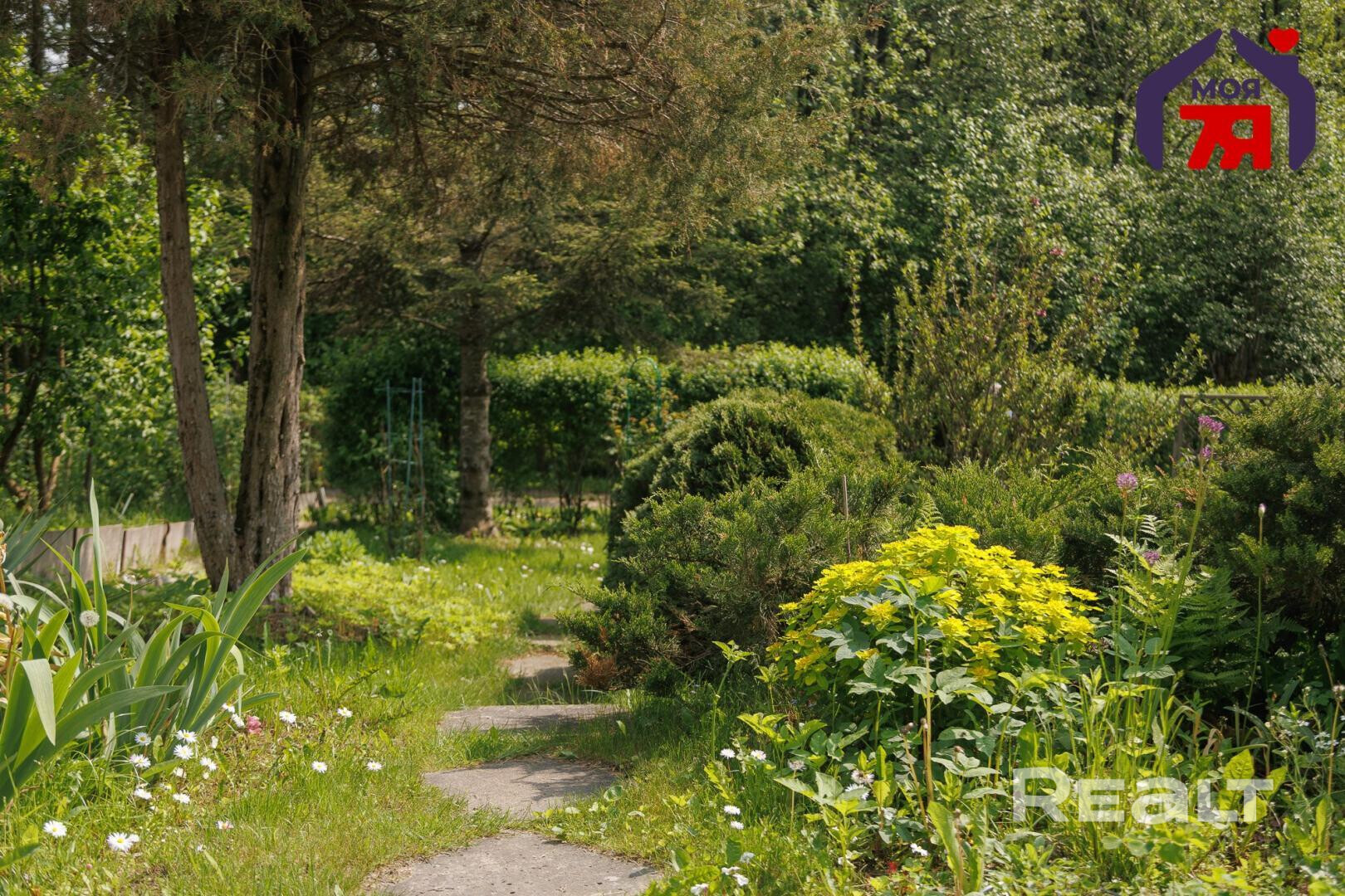 Дача стоит на огороженном участке площадью в 5,9 сотки. Территория имеет разноуровневый рельеф, а сам дом находится на возвышенности. С двух сторон дом окружают соседи, а еще с двух располагается лесной массив. У хозяев даже есть свой выход в природу! Кстати, в шаговой доступности от участка находится родник с чистейшей водой.