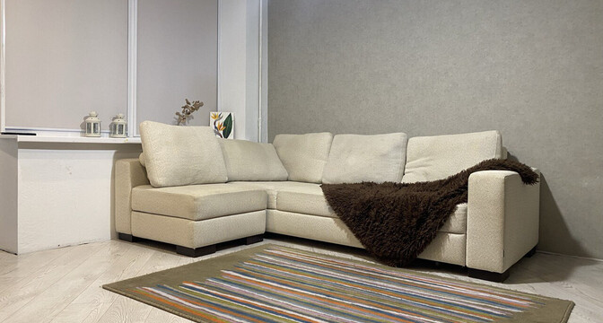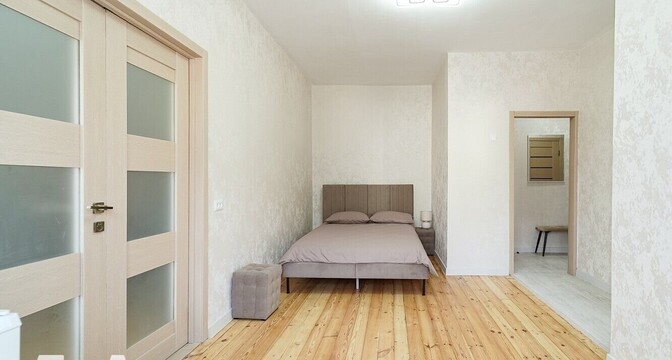 Общая площадь квартиры — 42 квадрата, жилых из них 29, а еще 5 занимает кухня. Квартира оформлена в светлых цветах. В комнате установлен кондиционер. Санузел совмещенный. Установлена ванна.