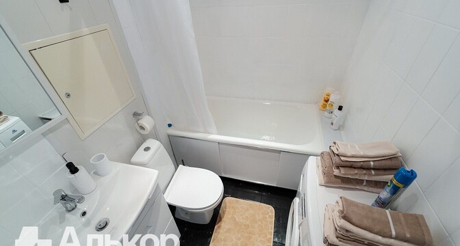 В спальне есть выход на атмосферный незастекленный балкон. В совмещенном санузле установлена душевая кабина.